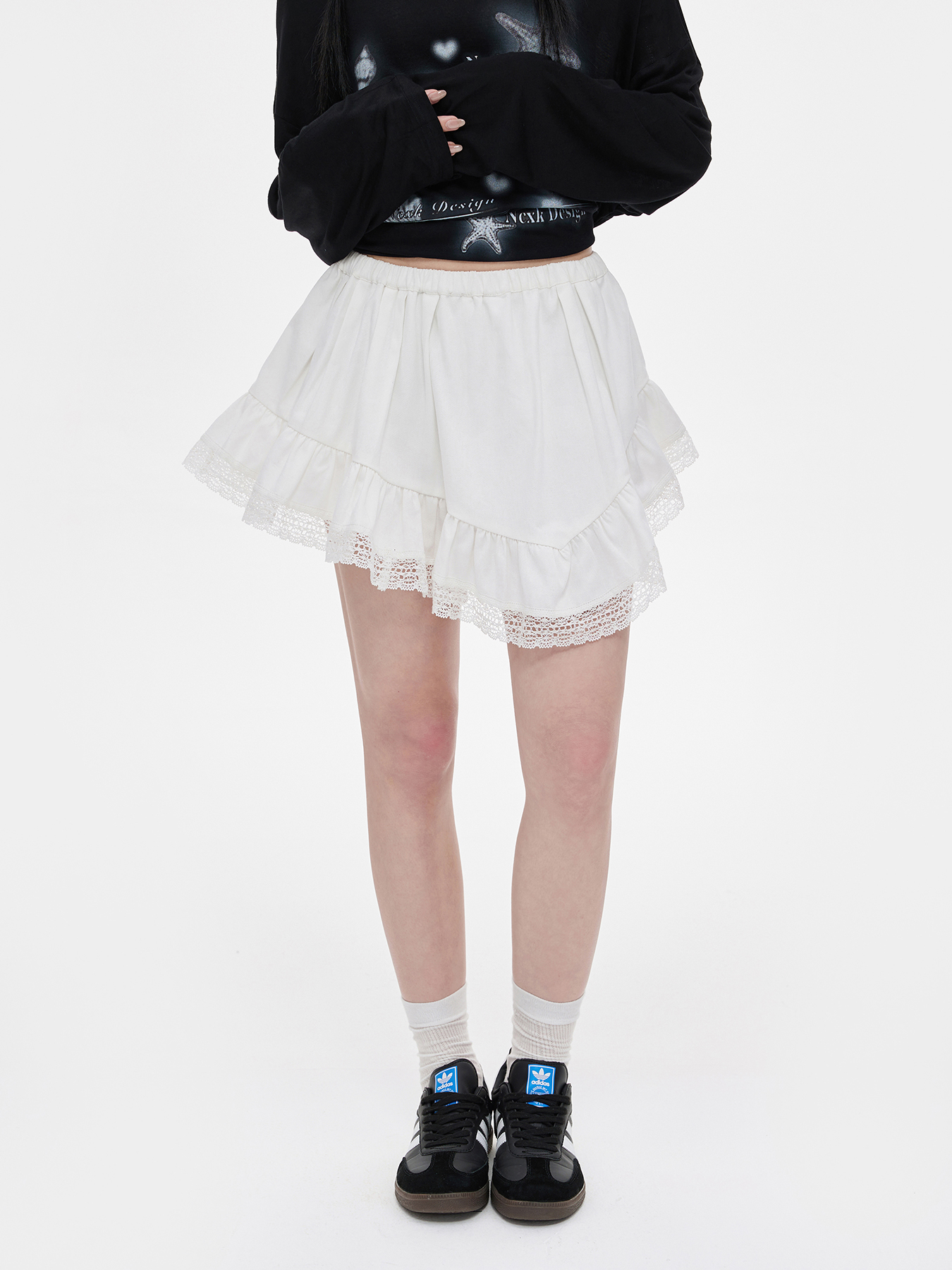 NCXK-斜边蕾丝花边不对称短裙蕾丝半身裙设计感防走光裤裙QZ214