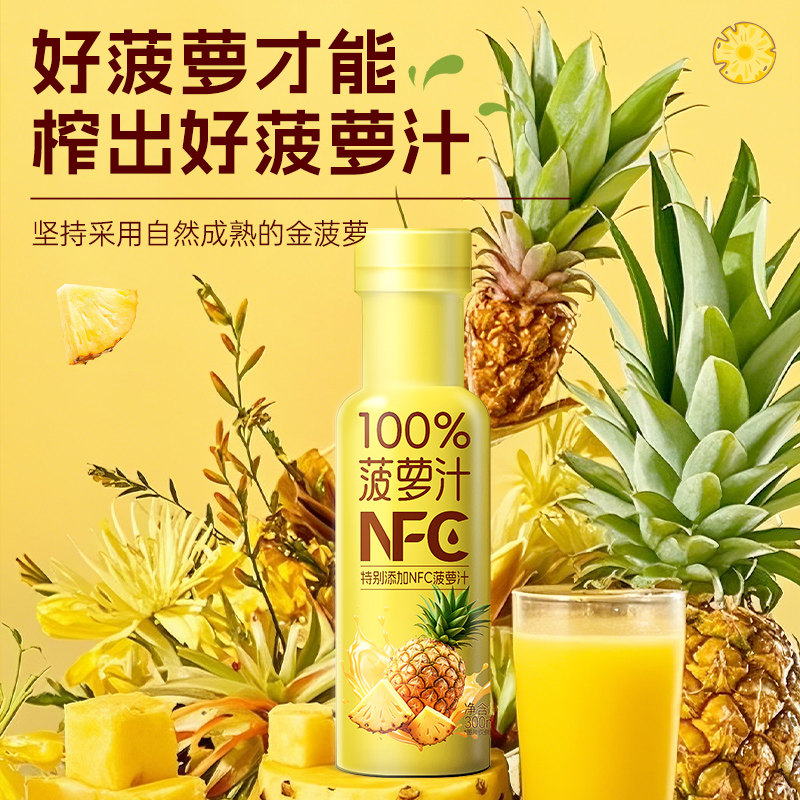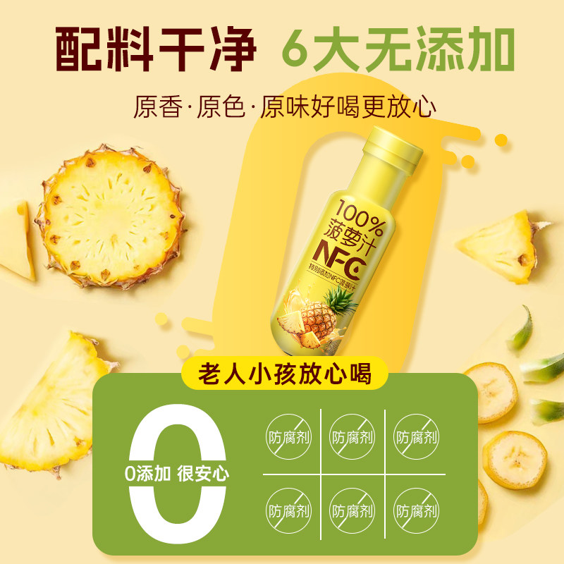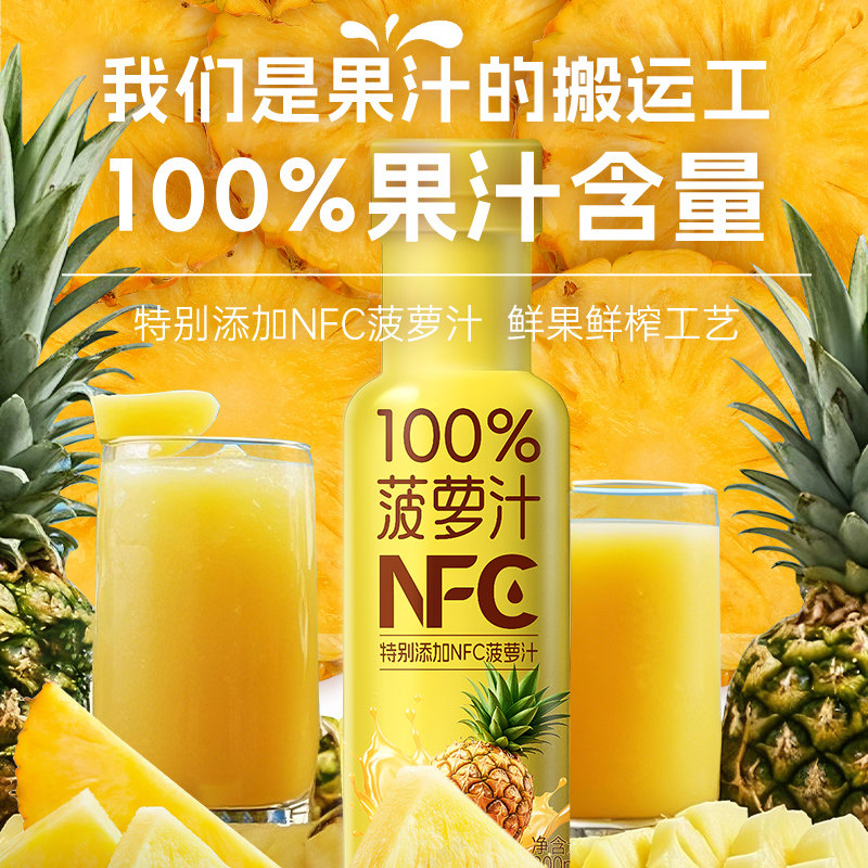 100%菠萝汁添加nfc鲜榨果汁饮料纯冰菠萝汁浓缩达川调酒凤梨汁1L