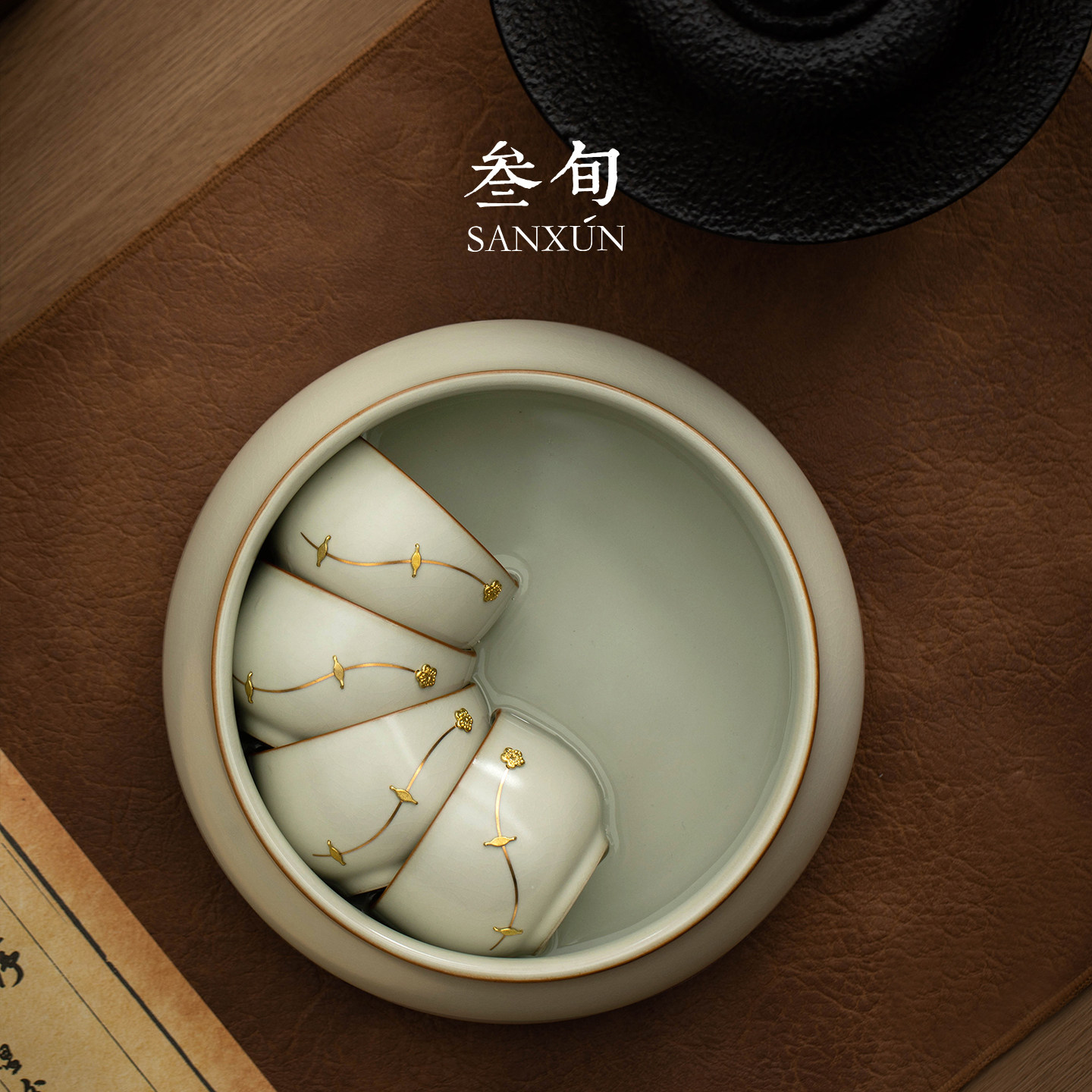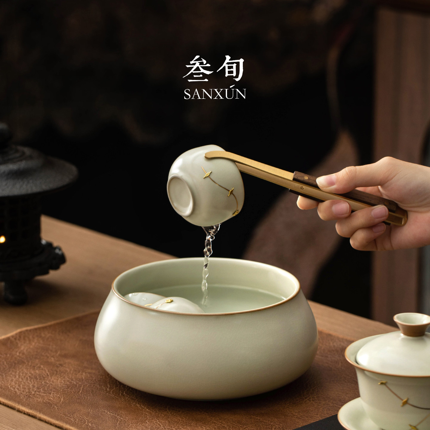 叁旬汝窑茶洗茶渣缸轻奢高端陶瓷建水孟大号笔洗功夫茶具茶道配件