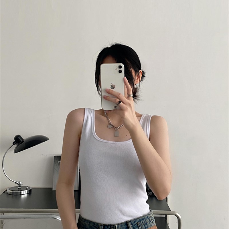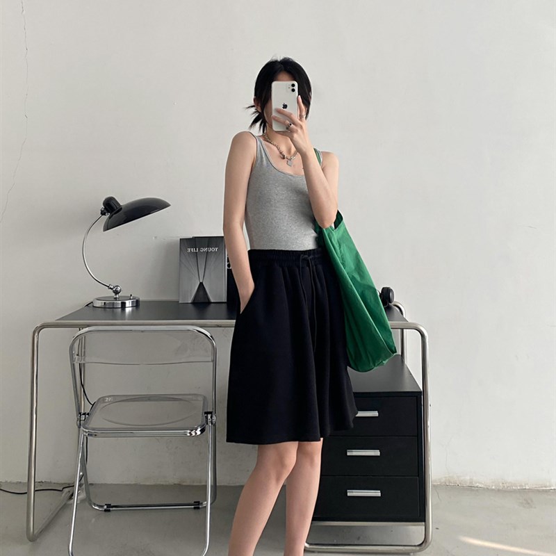 sun柚 灰色针织方领吊带背心女外穿2025夏季百搭无袖内搭打底衣服
