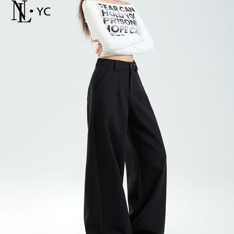 175高个子加长版黑色西装阔腿裤女2025新款宽松显瘦垂感直筒裤子
