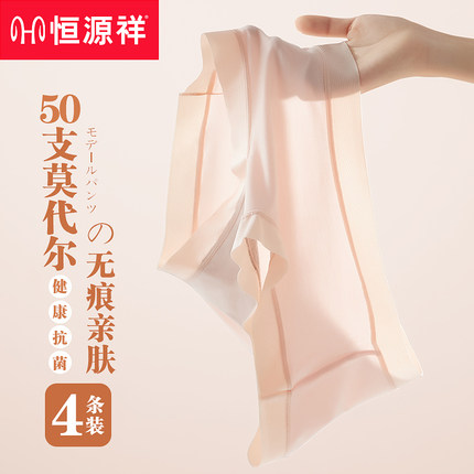 恒源祥莫代尔内裤女士无痕中腰抗菌大码新款全棉纯棉裆三角短裤头