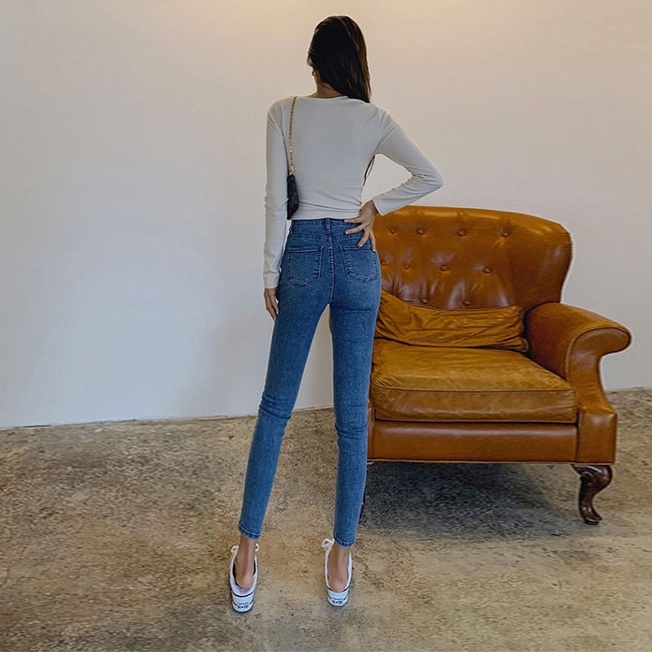 高腰牛仔裤女2025新款春秋弹力紧身显瘦修身大码胖mm小脚裤子潮