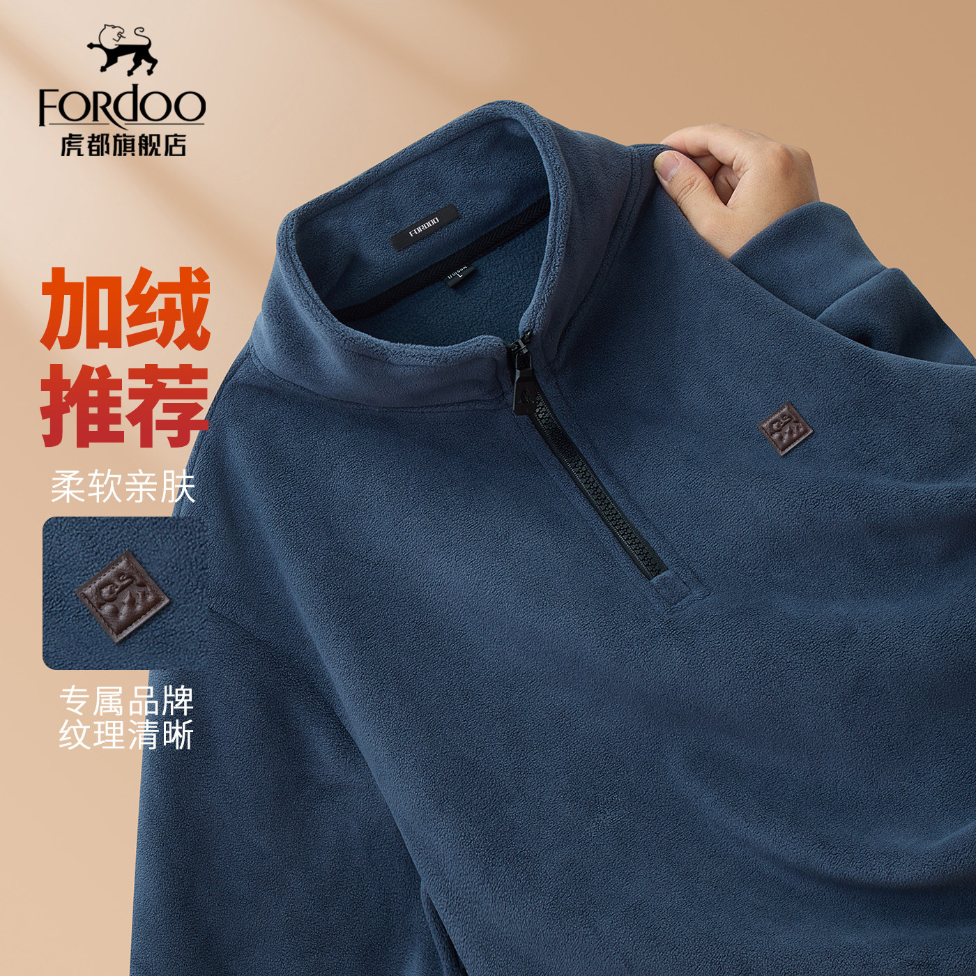 【摇粒绒】虎都新款男士高端品牌加绒半拉链卫衣2025休闲打底衫