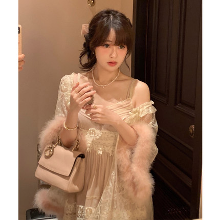 Starry日系重工蕾丝棉质吊带裙