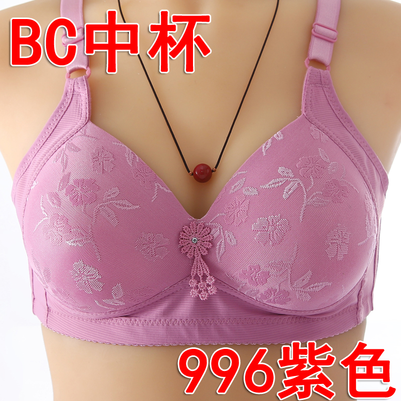 无钢圈文胸中年女士内衣调整型妈妈防下垂胸罩老年人超薄海绵夏季