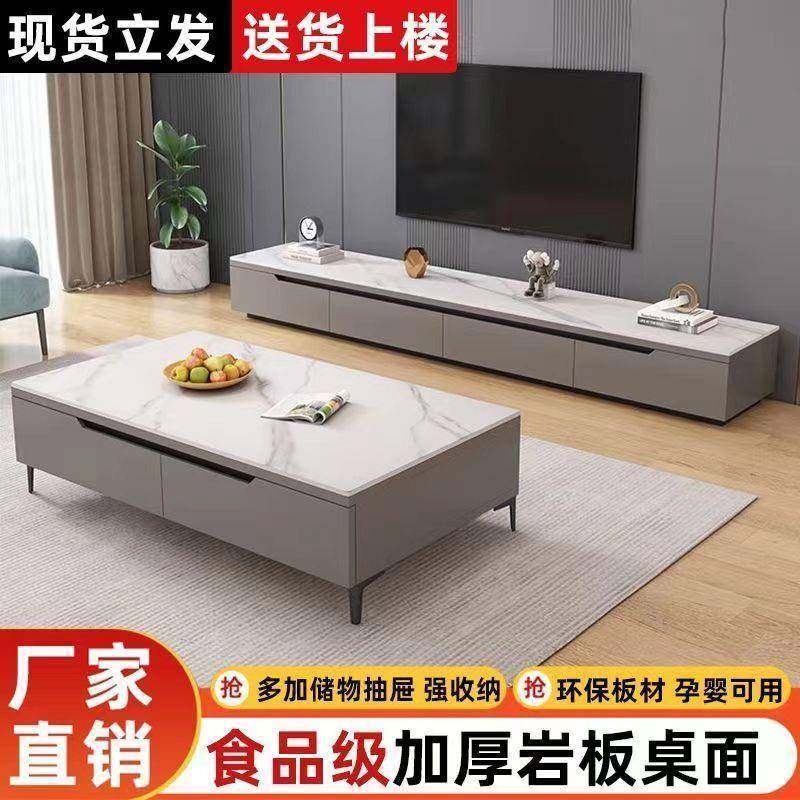 岩板电BTW视柜茶几子组合套装简约北家用客厅电视机柜欧轻意式奢