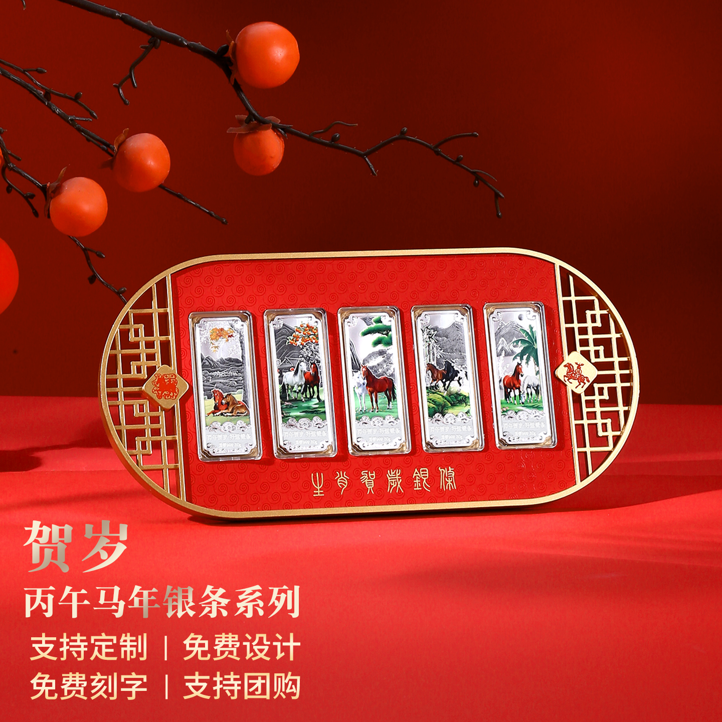 马年生肖纯银银条套装摆件贺岁纪念收藏公司年会定制高档纪念礼品
