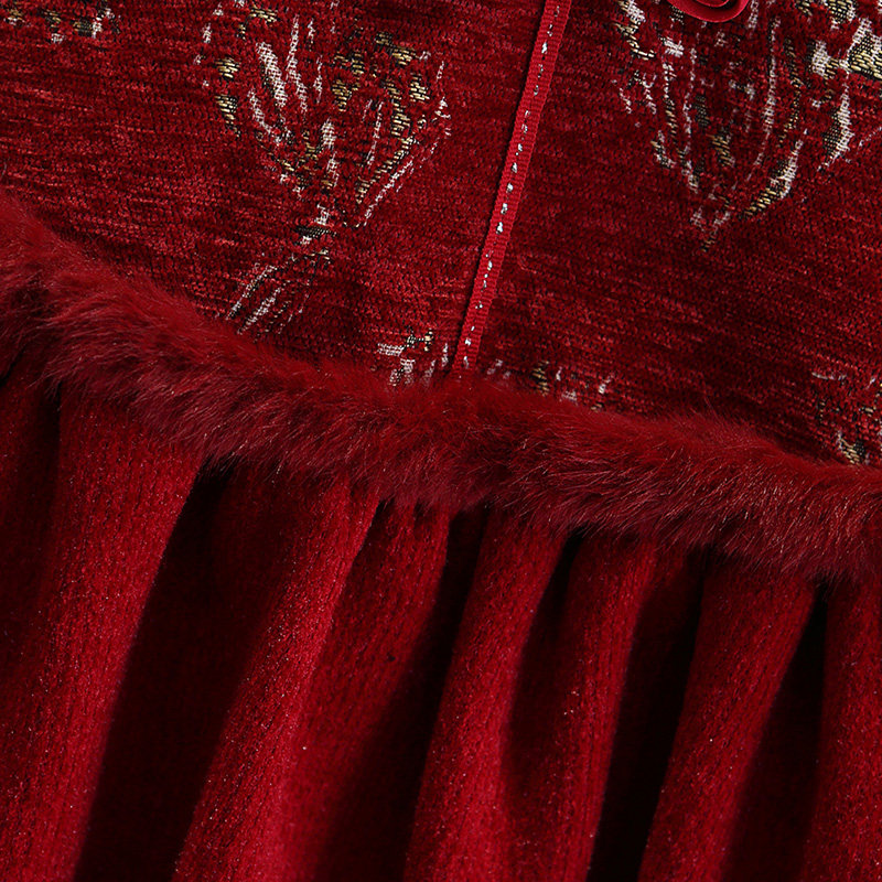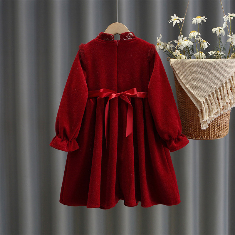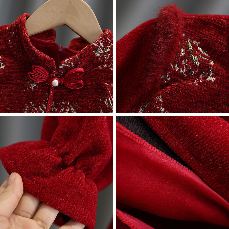 女童国潮风旗袍连衣裙秋冬装儿童加绒圣诞公主裙子女孩红色拜年服