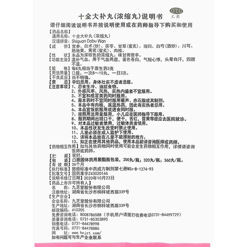 九芝堂 十全大补丸200丸补气补血气虚贫血头晕体寒怕冷手脚冰凉