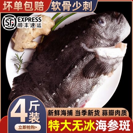 新鲜海参斑鱼4斤左右进口冰岛海参斑鱼石斑鱼胶原蛋白鱼年货批发