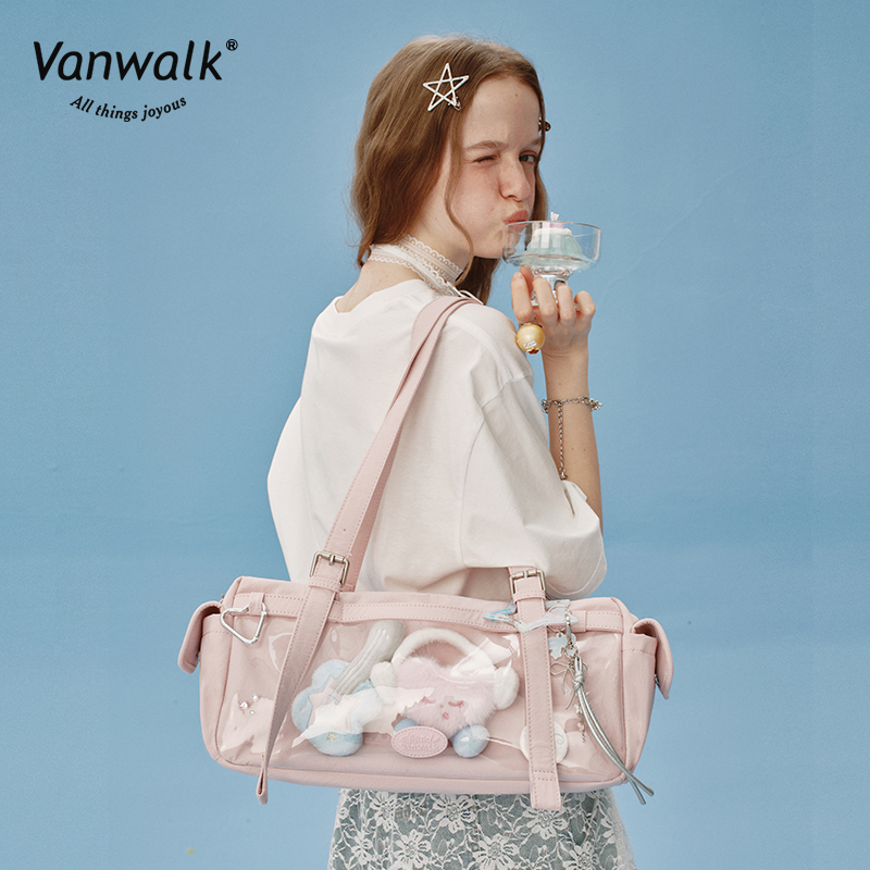VANWALK happy band新款大容量手提单肩斜挎包女生出游痛包旅行袋