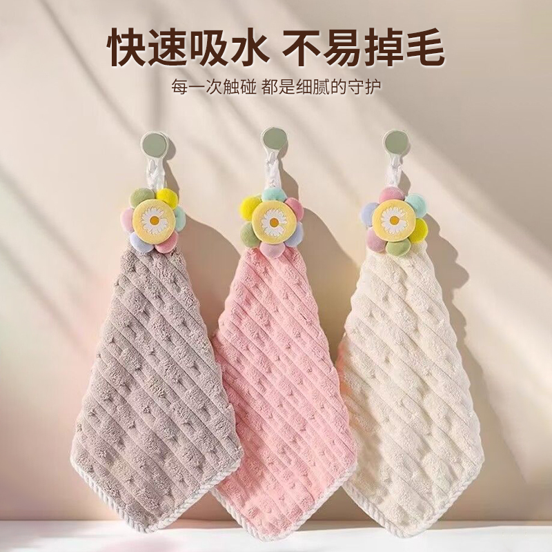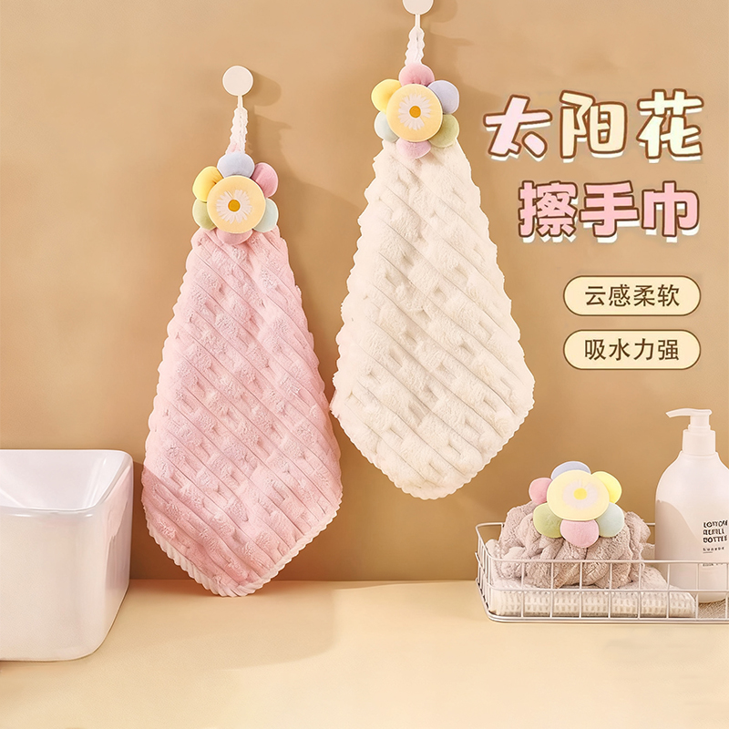 太阳花擦手毛巾挂式厨房卫生间吸水布速干可爱儿童毛巾加厚擦手巾