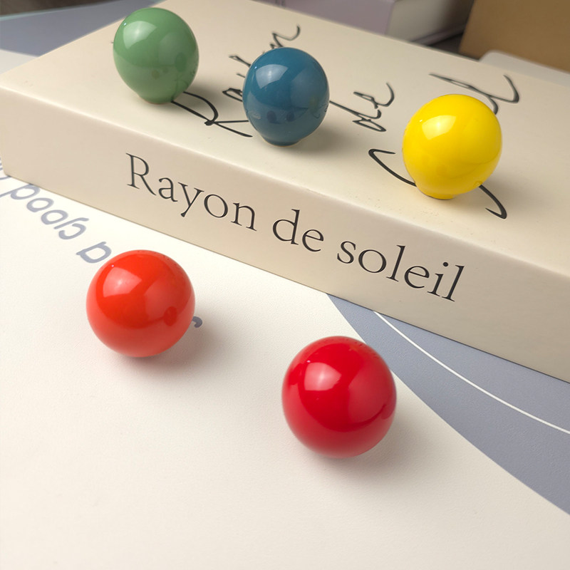 儿童房衣柜拉手日式极简可爱彩色圆球柜子圆形柜门单孔抽屉把手