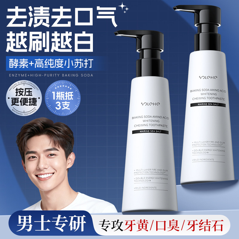 小苏打按压泵式牙膏去黄去口臭美白除垢烟渍成人官方正品男士专用