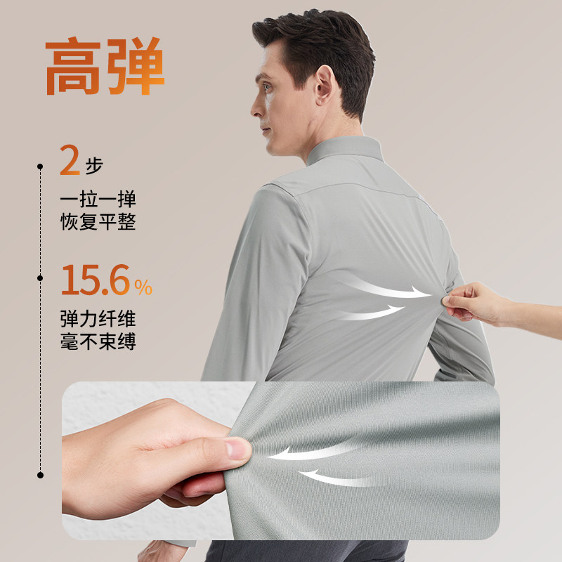 杉杉男士衬衫长袖2025春秋季新款商务休闲三防衬衫男白色正装衬衣