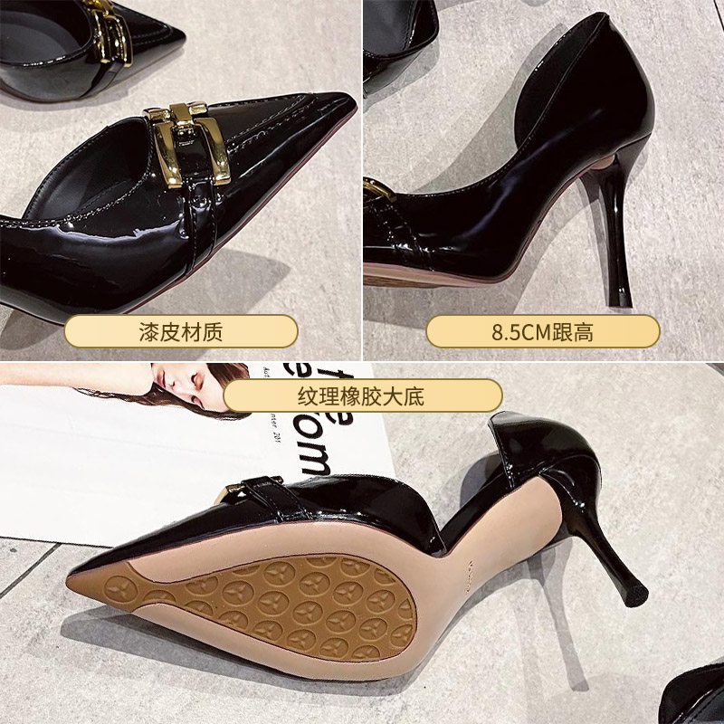 2025年夏季百搭新款侧空尖头鞋网红法式高跟鞋女细跟夜店性感单鞋