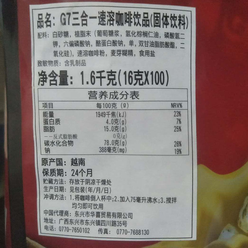 醇香咖啡越南三合一G7速溶咖啡