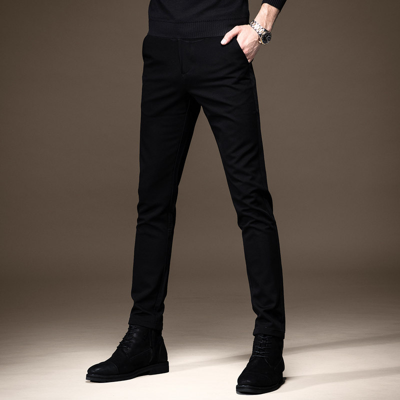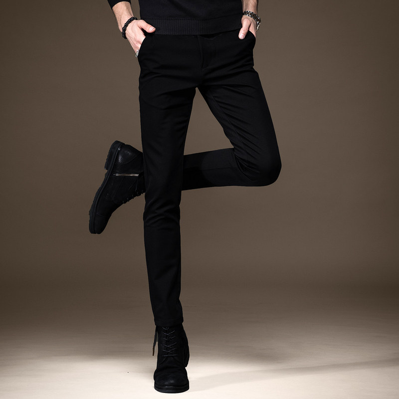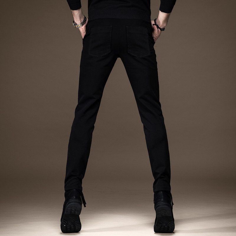 高端纯黑色牛仔裤男秋季加绒韩版潮牌修身小脚弹力百搭休闲裤子男
