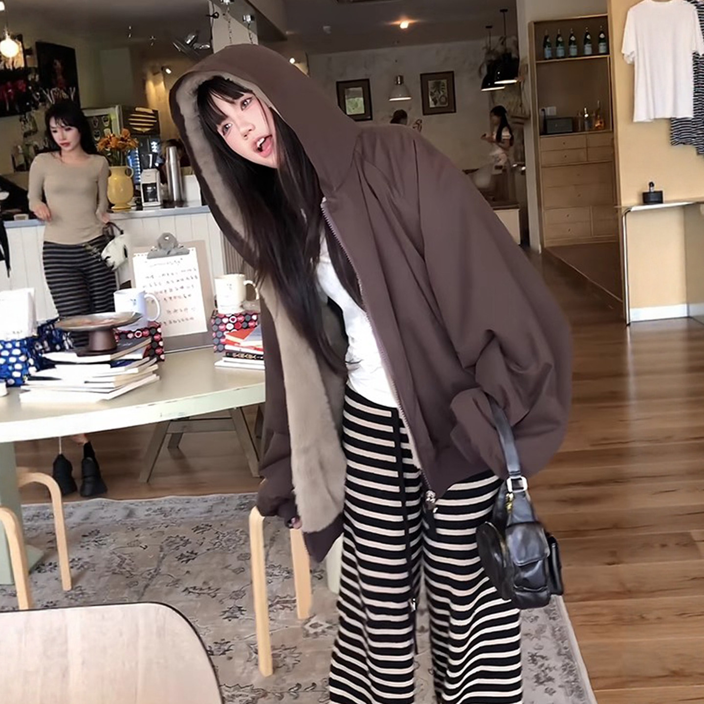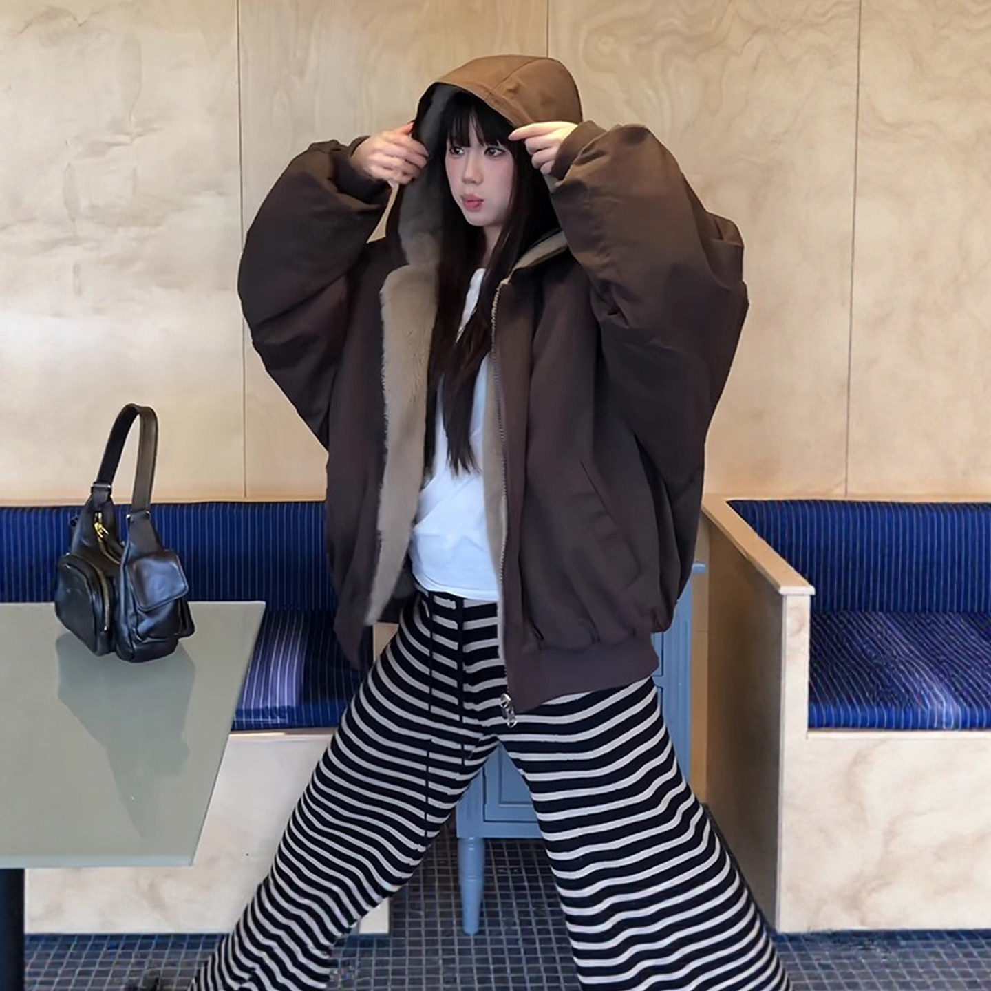 双面穿仿貂毛美式复古座山雕棉服