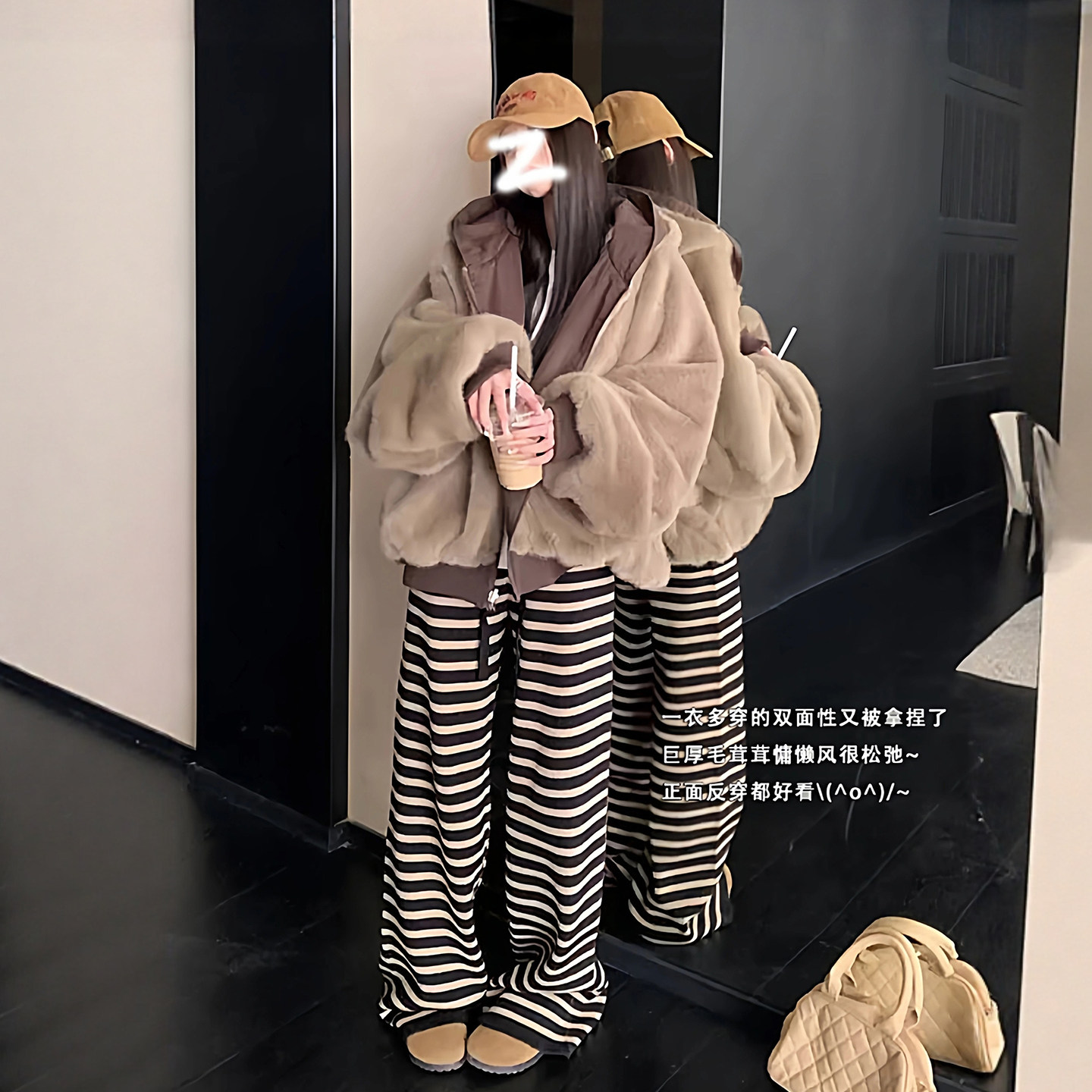 双面穿仿貂毛美式复古座山雕棉服女2025冬季新款情侣加厚棉衣外套