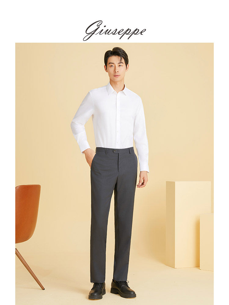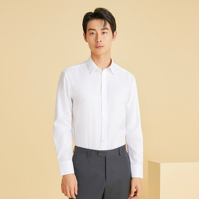 【免烫】乔治白春秋季男士长袖衬衫商务纯棉白衬衣纯色职业上衣