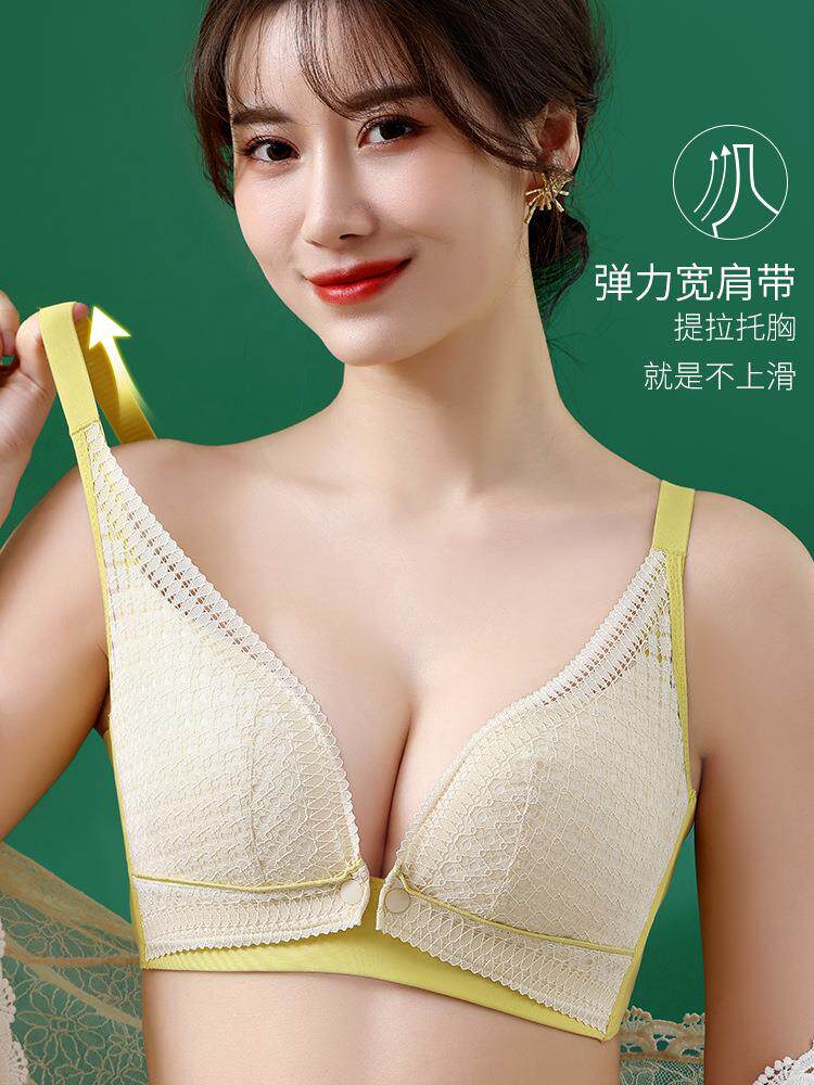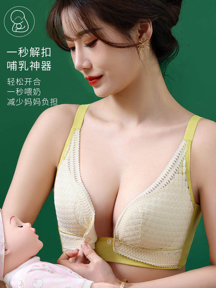 新款法式蕾丝边孕妇内衣无钢圈无痕聚拢透气前开扣喂奶哺乳文胸罩