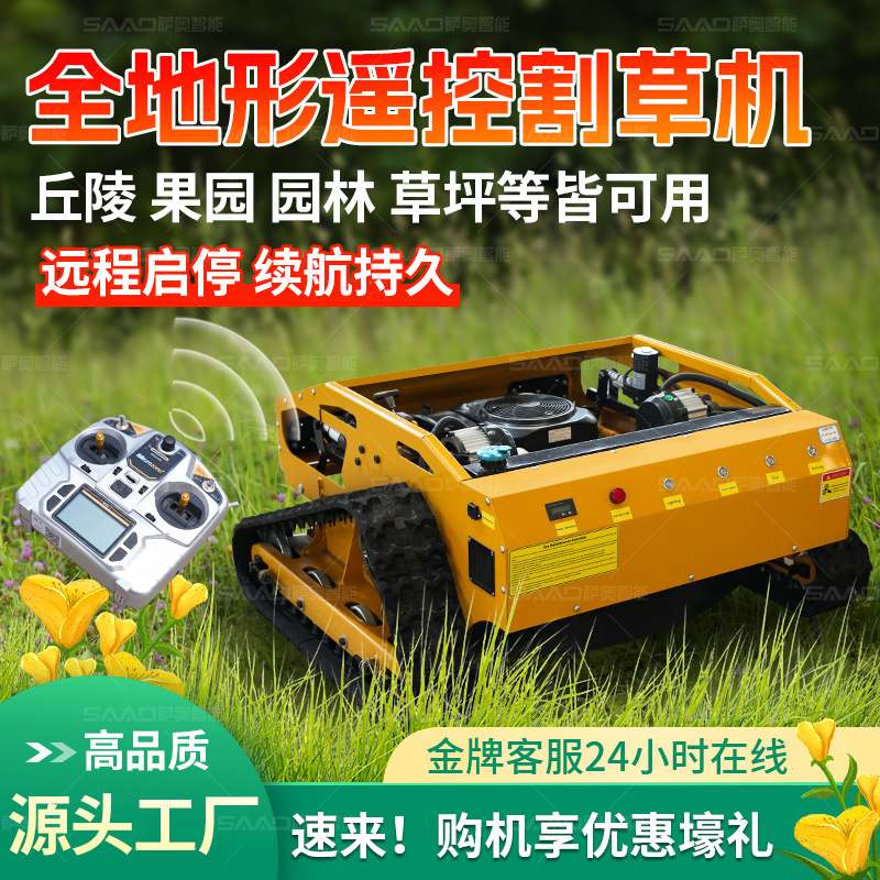 全自动园林绿化除草机小型遥控履带式割草机无线遥控履带割草机