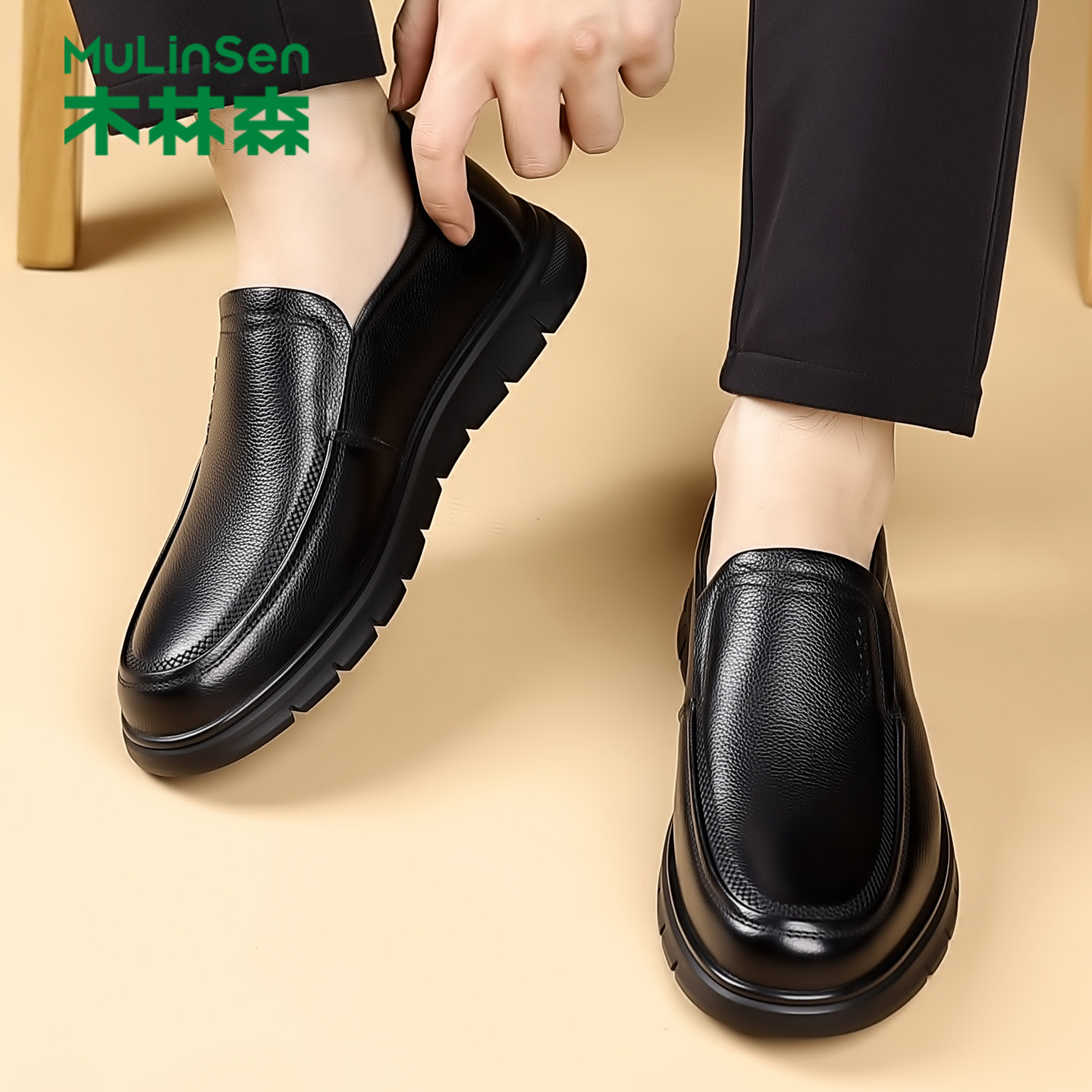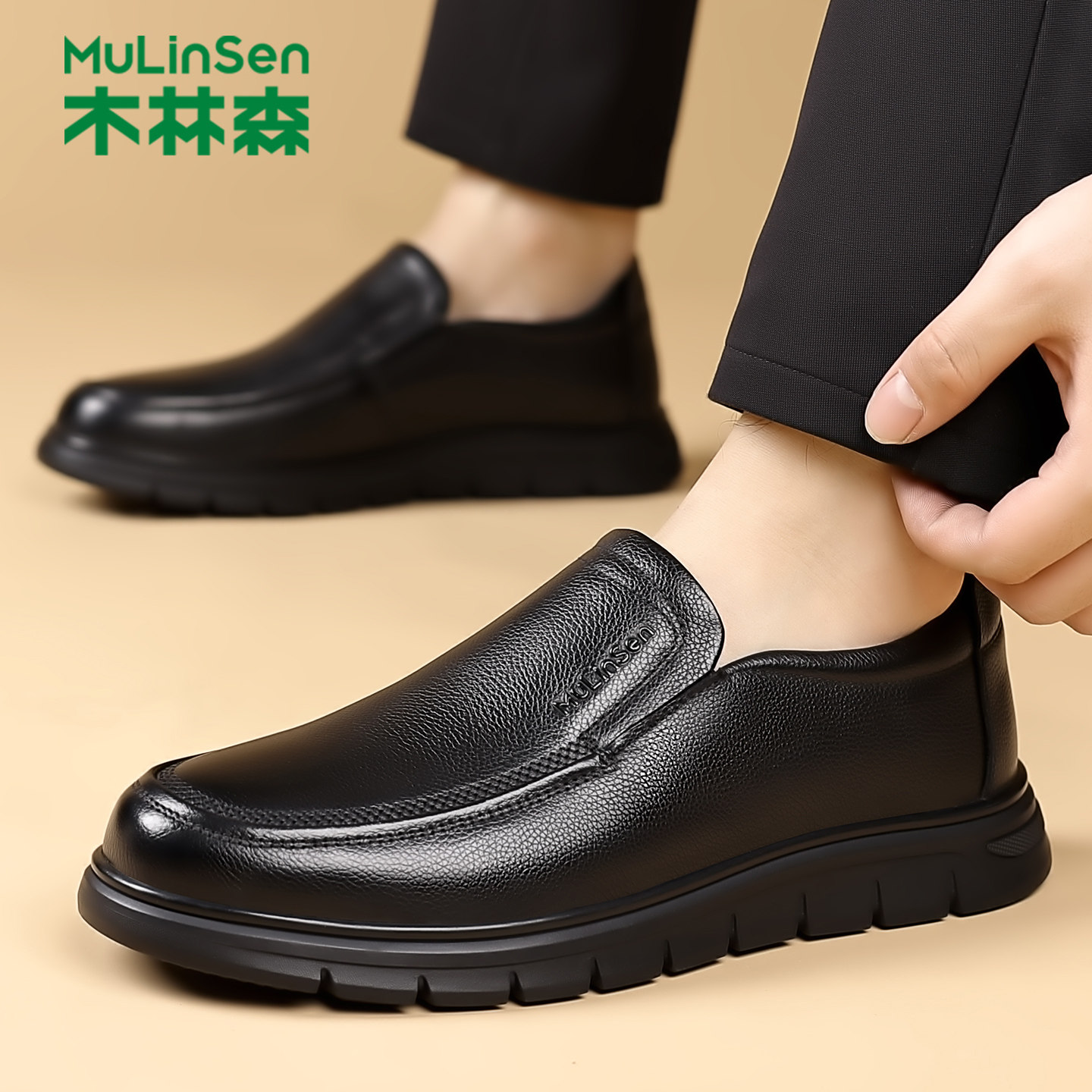 木林森2025新款商务休闲皮鞋