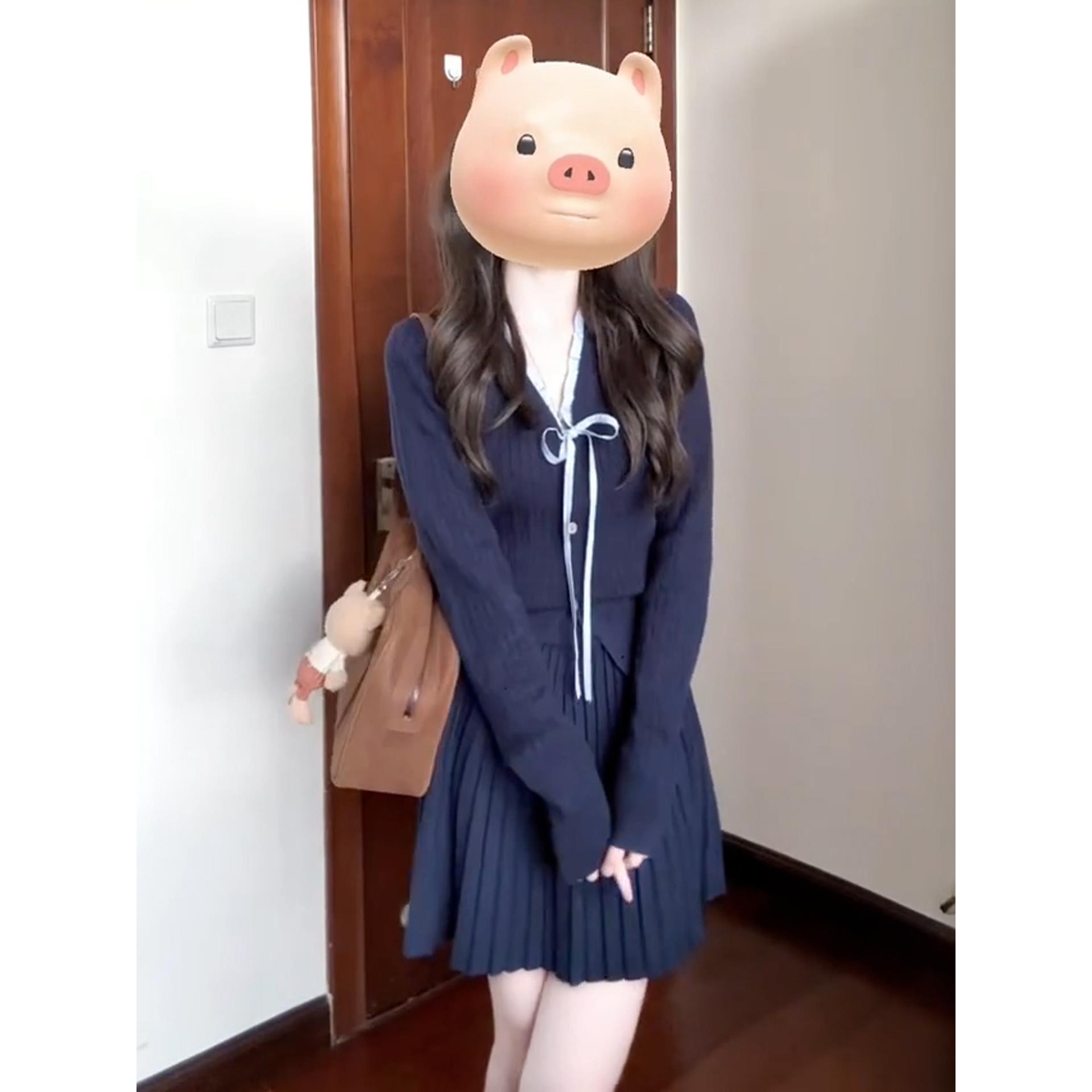 韩系流行miu系穿搭一整套学院风套装针织连衣裙子女秋季2025新款