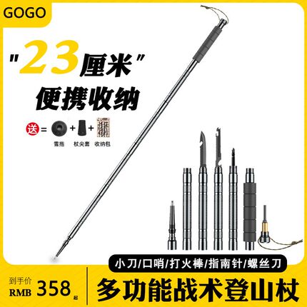 德国多功能登山杖专业户外徒步伸缩杆防身K棍拐杖爬山装备折叠手