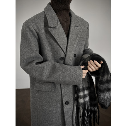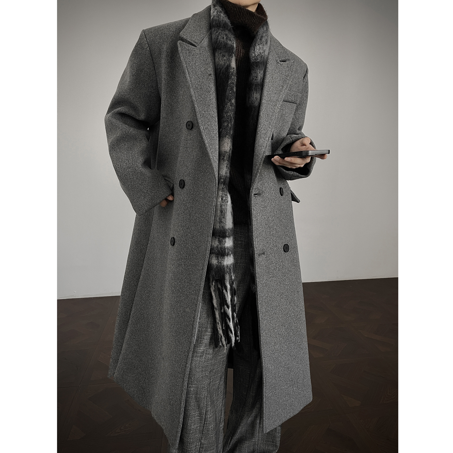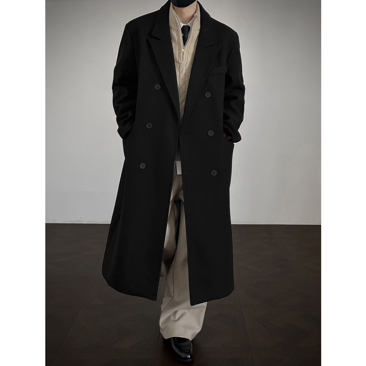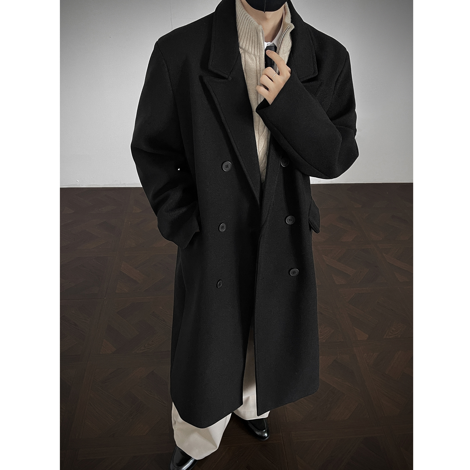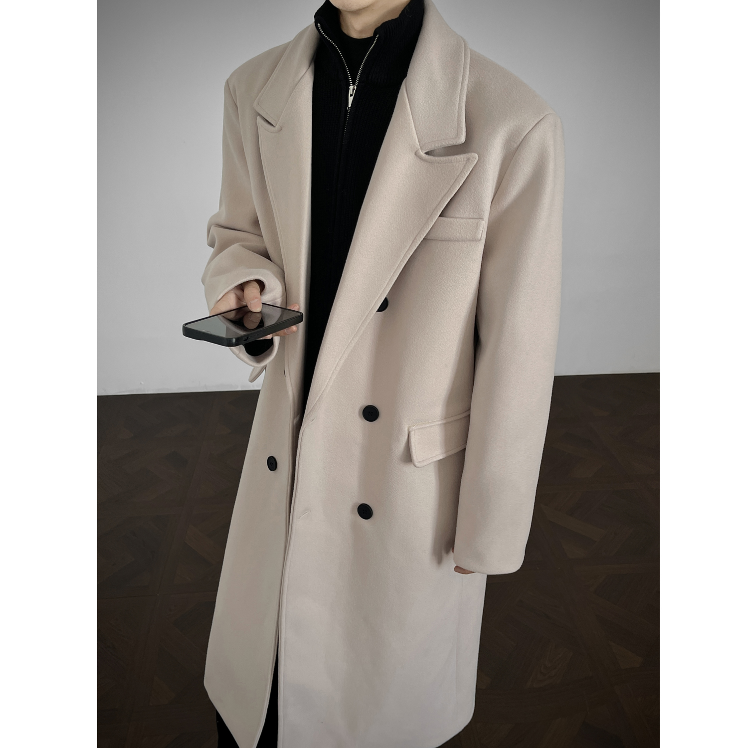 2025毛呢大衣男中长款垫肩风衣冬季加厚过膝长款西装领英伦外套