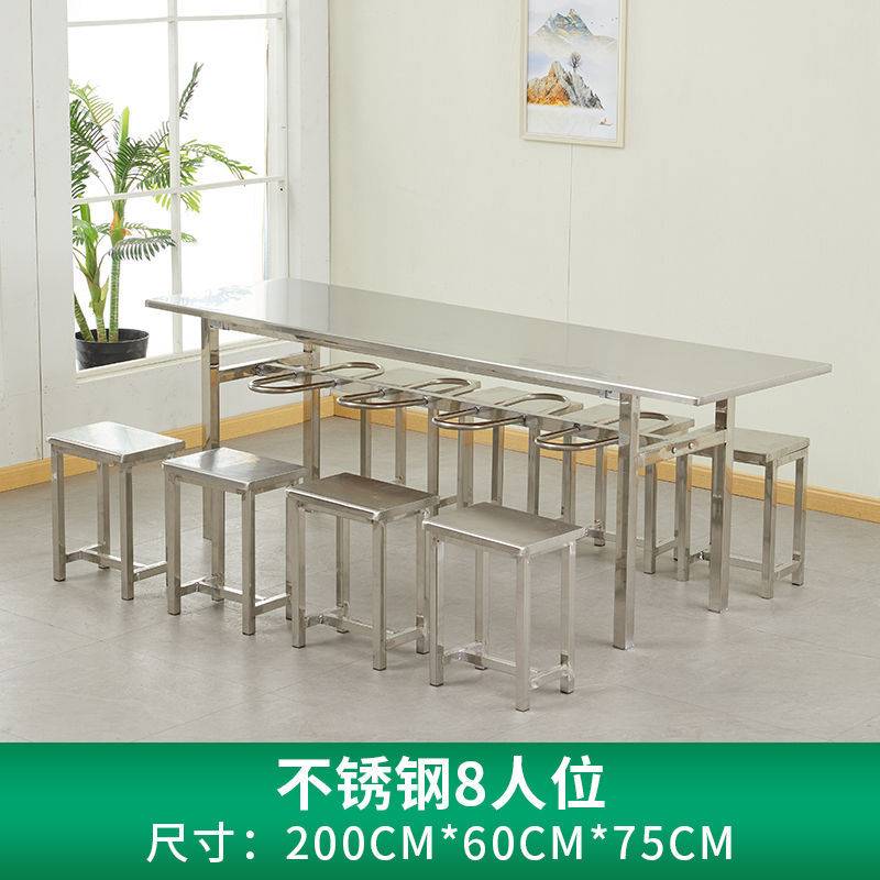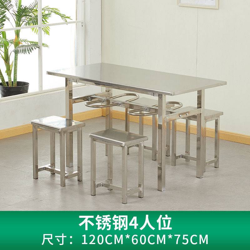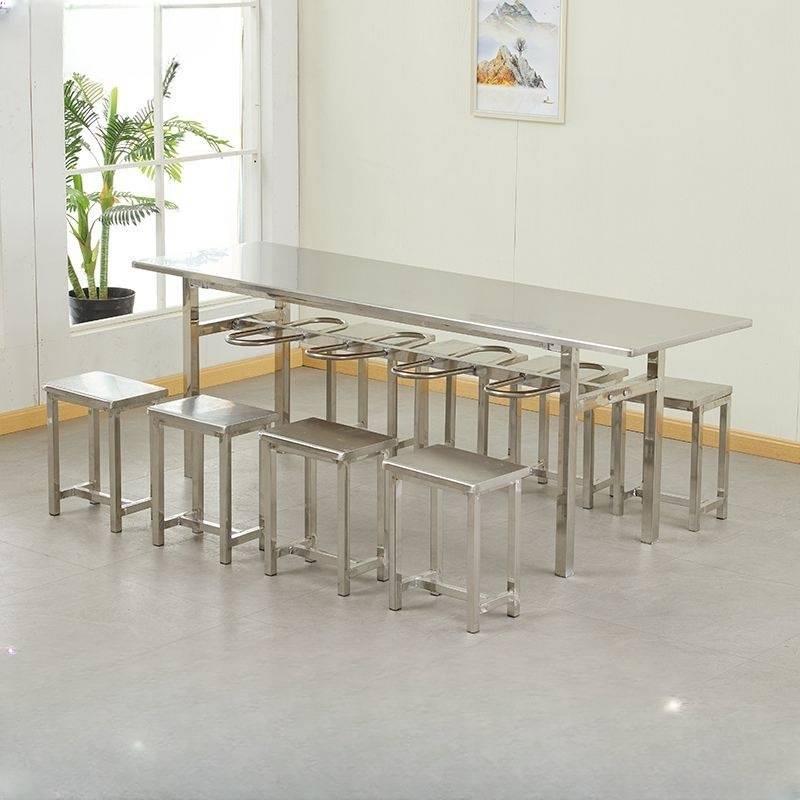 食堂餐桌椅一体式不锈钢学校学生快餐店连体不锈钢挂凳餐桌椅组合