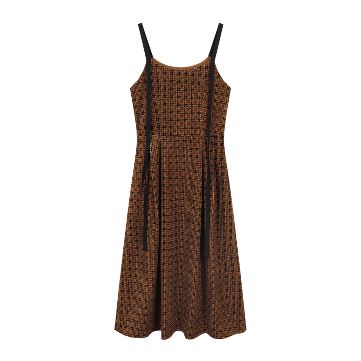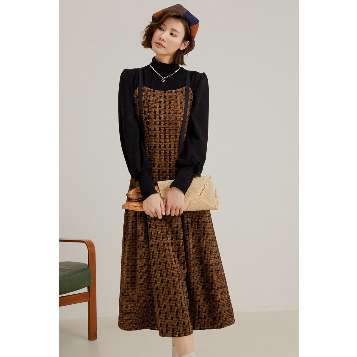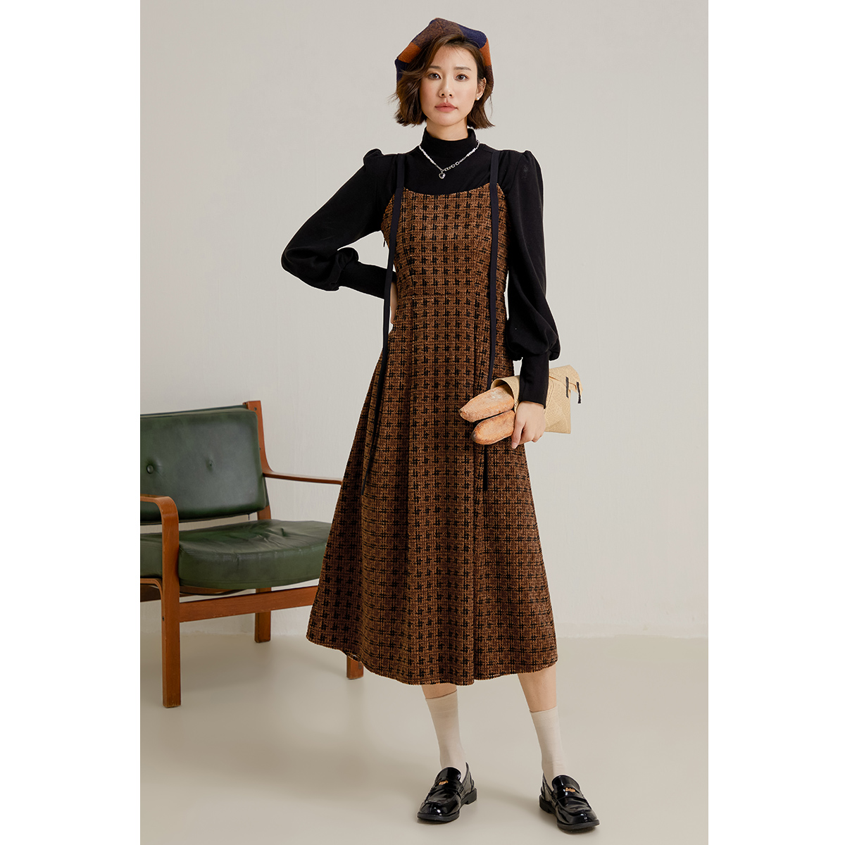 弥古格子吊带裙灯芯绒连衣裙女春秋外穿背带裙秋冬收腰长裙高级感