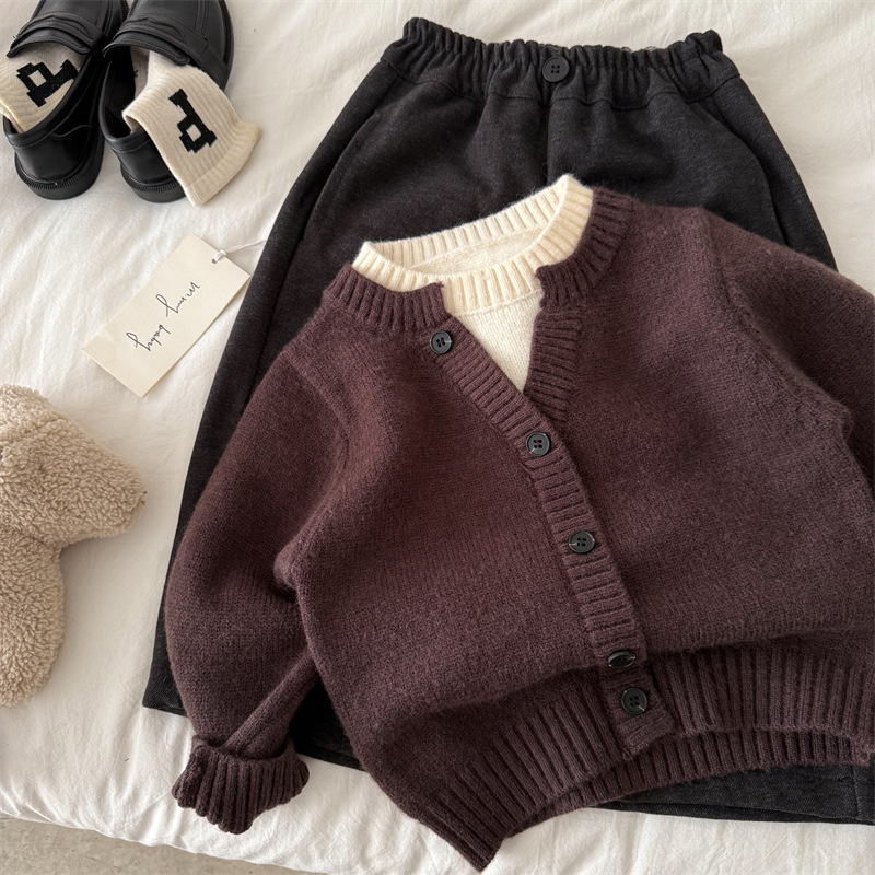 儿童毛衣2025网红冬季新品男女童假两件撞色毛衣宝宝韩版针织衫