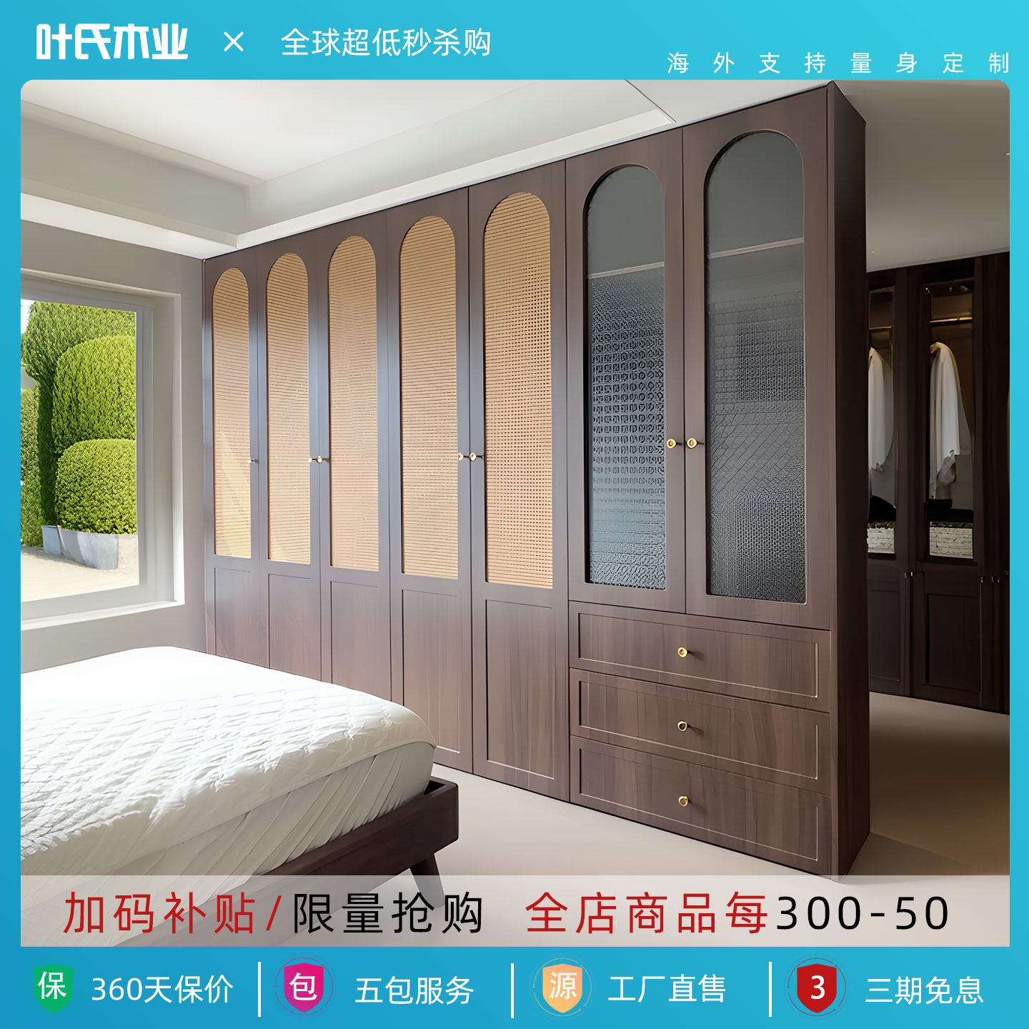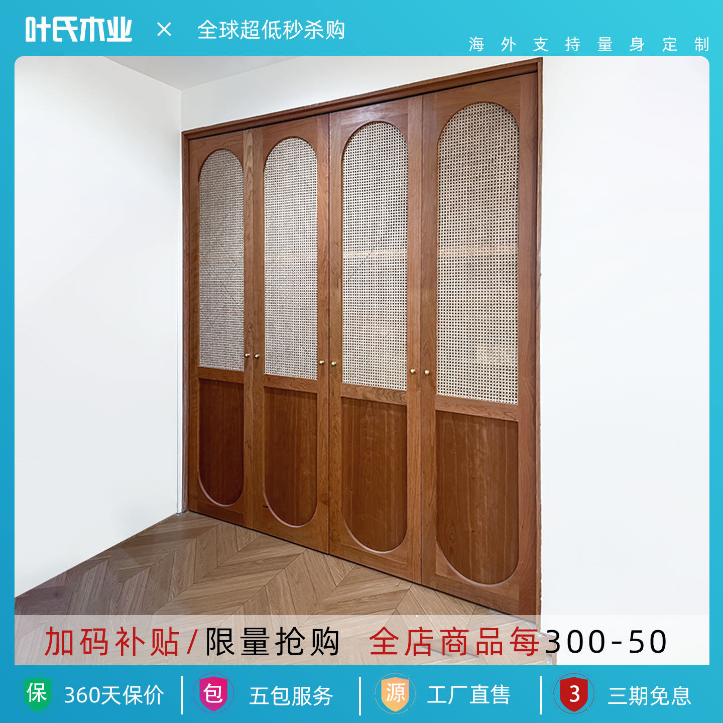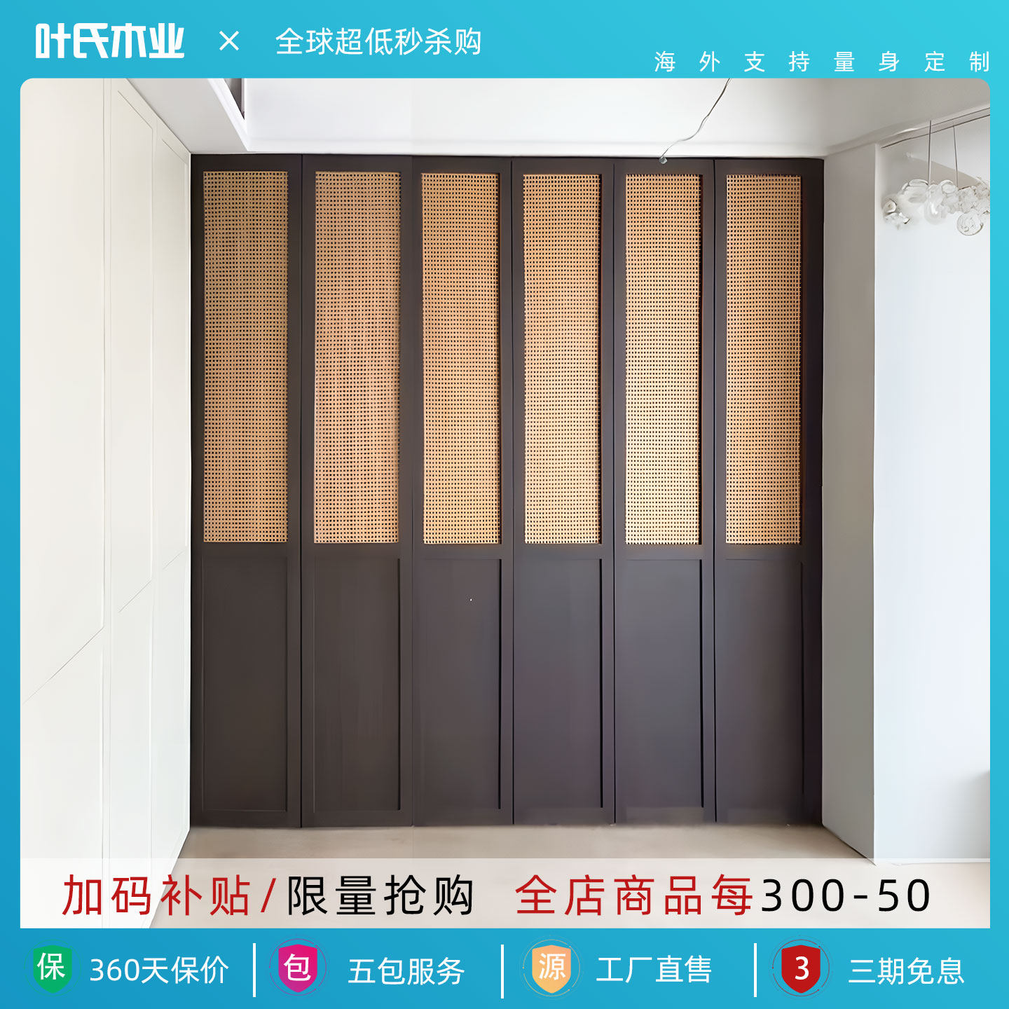 藤编门定制折叠门新中式衣橱门中古风藤编隔断门室内移门藤编柜门