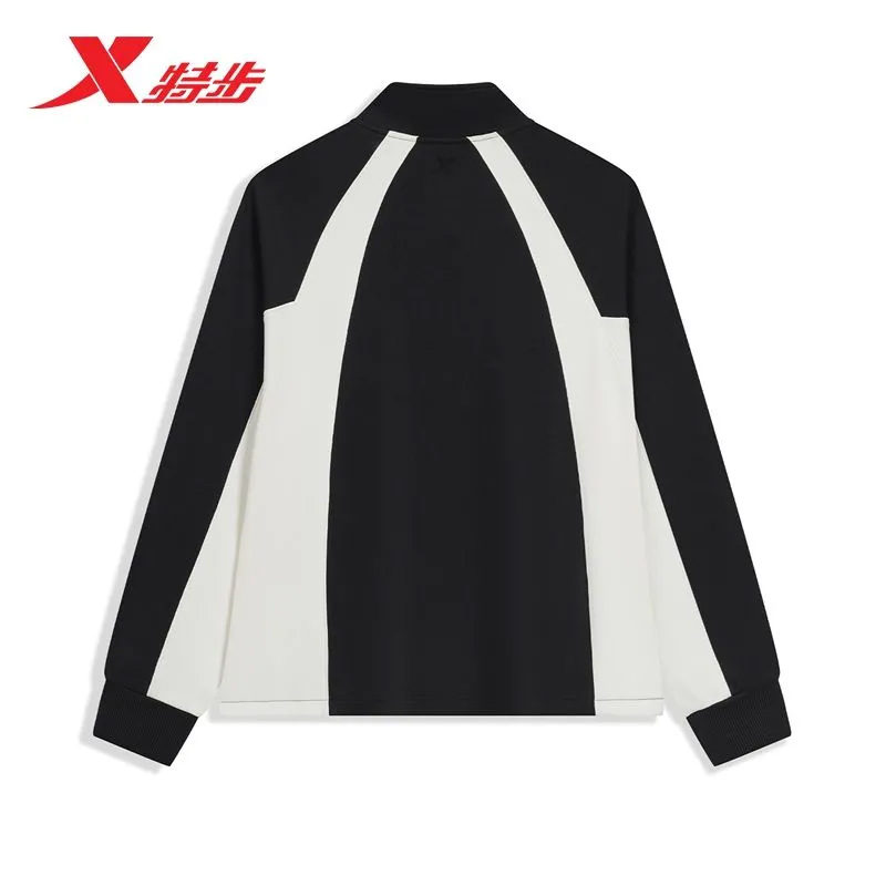 特步卫衣女2025秋季新款拼接撞色半拉链立领套头上衣975328920187
