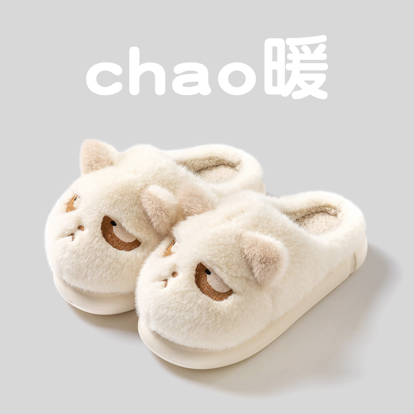 撇嘴小猫可爱冬季厚底防滑室内家居保暖棉拖鞋加厚软底居家棉拖鞋