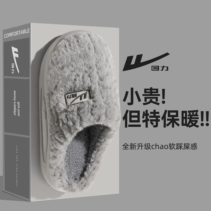 回力踩屎感棉拖鞋男款2025新款冬季家居室内防滑防臭毛绒保暖棉拖