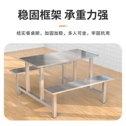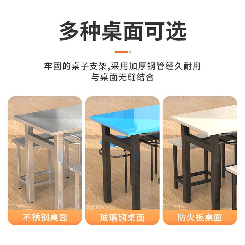 不锈钢快餐桌工厂员工食堂4人8人位餐桌饭店学校餐厅组合连体餐桌