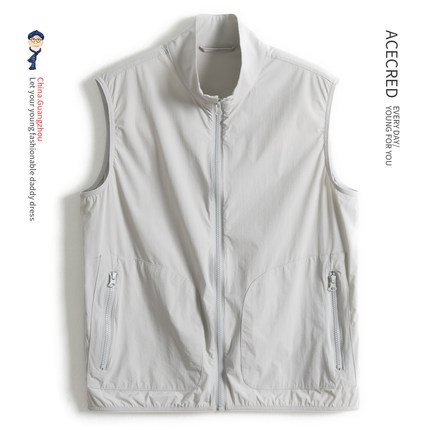 中年爸爸夏装马甲轻薄透气中老年人春夏宽松单层马夹老人爷爷背心