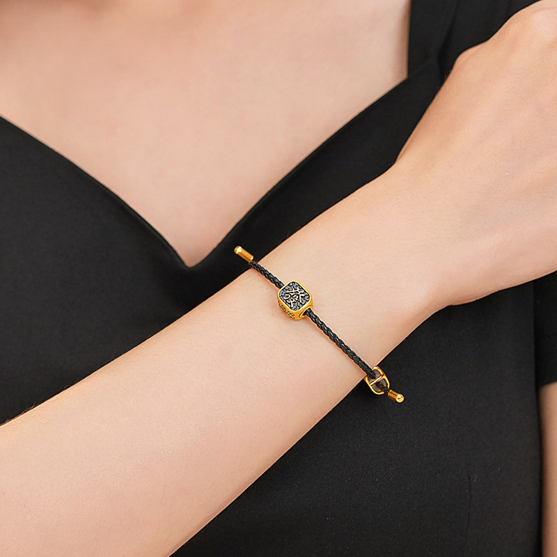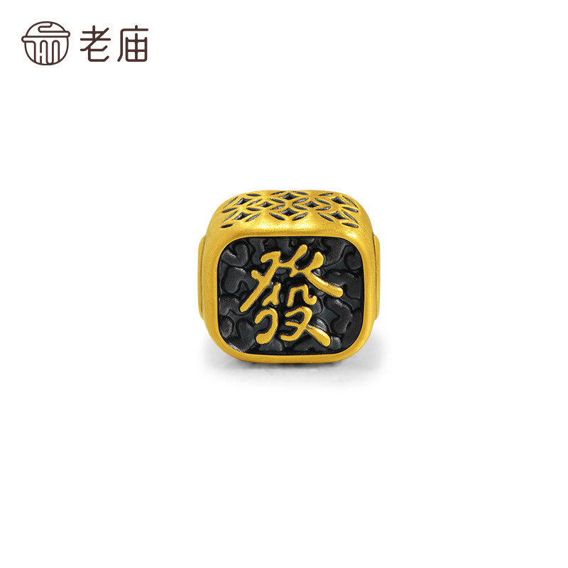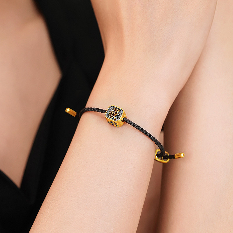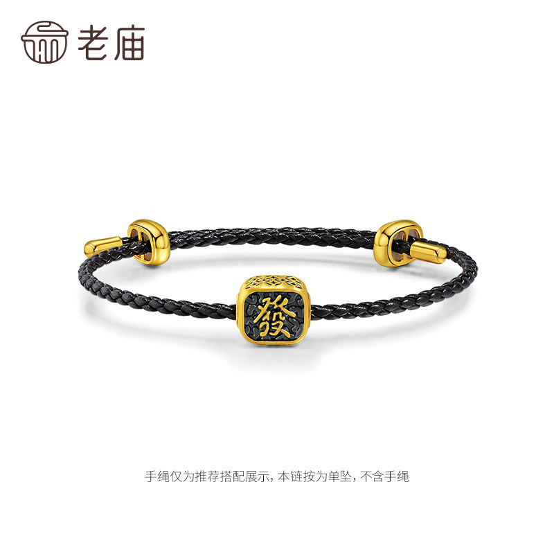 预售老庙黄金足金电黑發字串珠5D铜钱环绕遇水则发潮酷时尚百搭招
