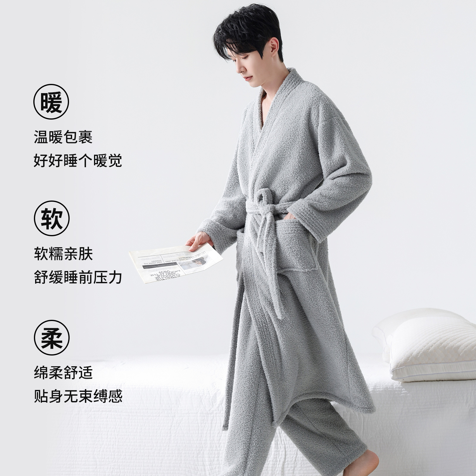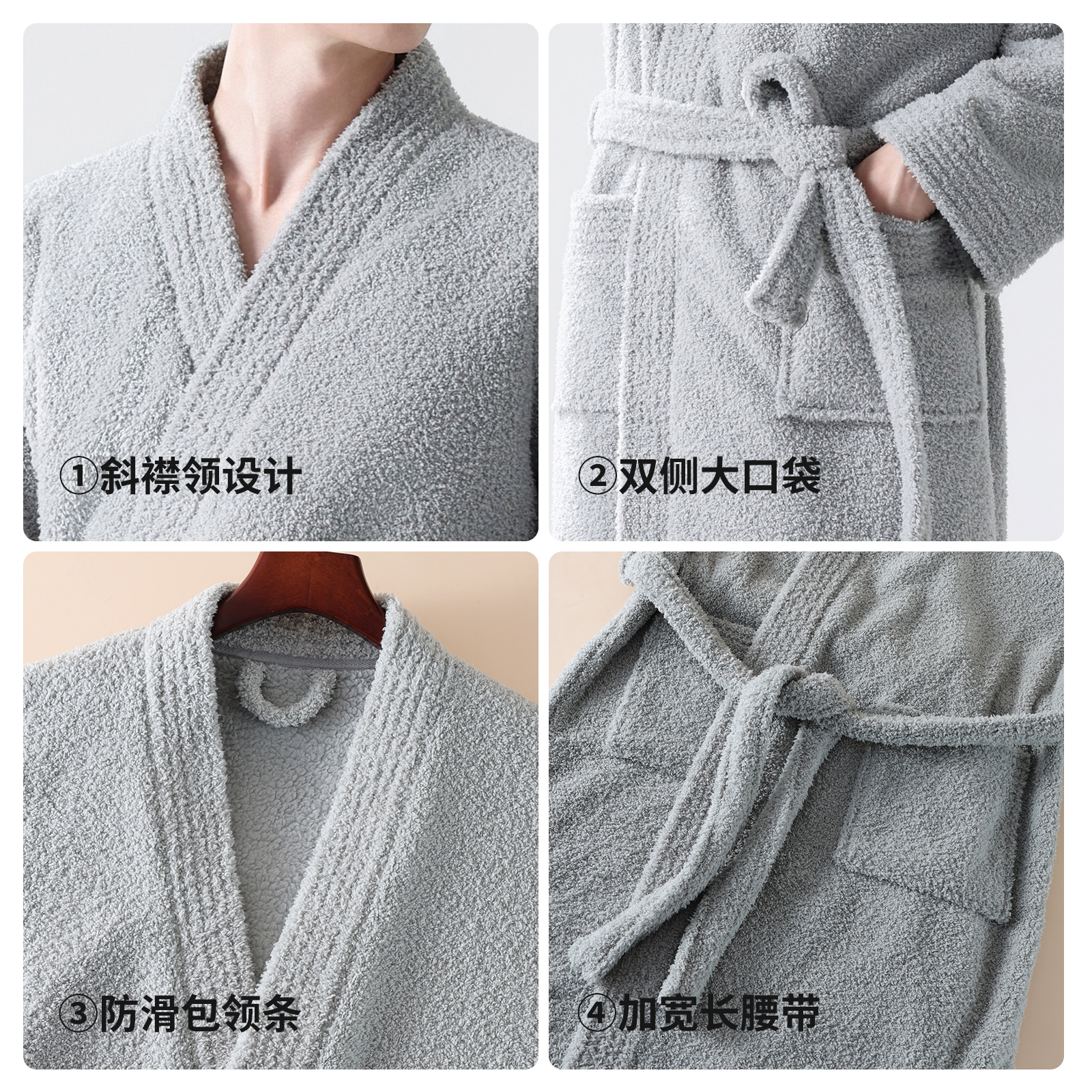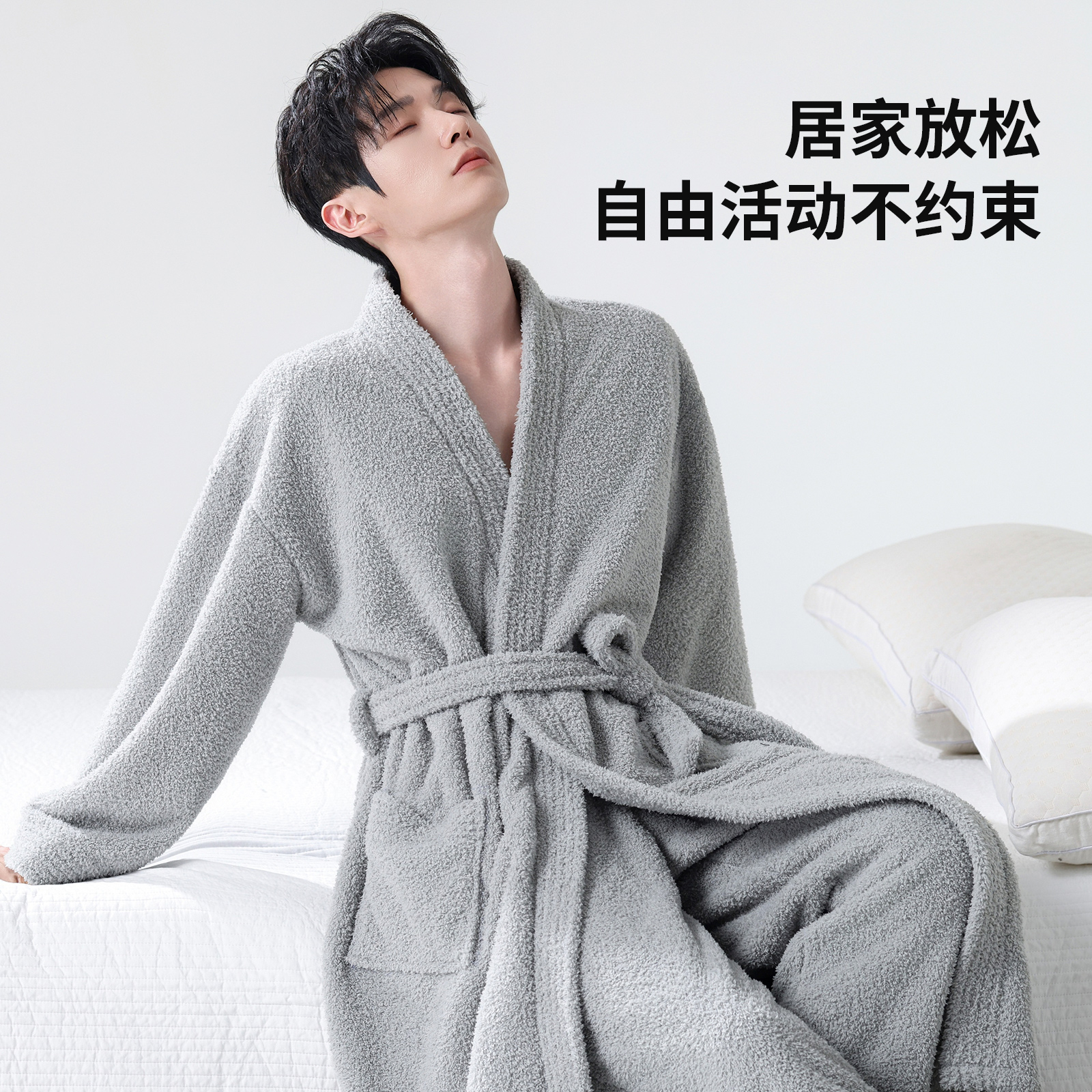 恒源祥男士冬季仿半边绒睡衣睡袍