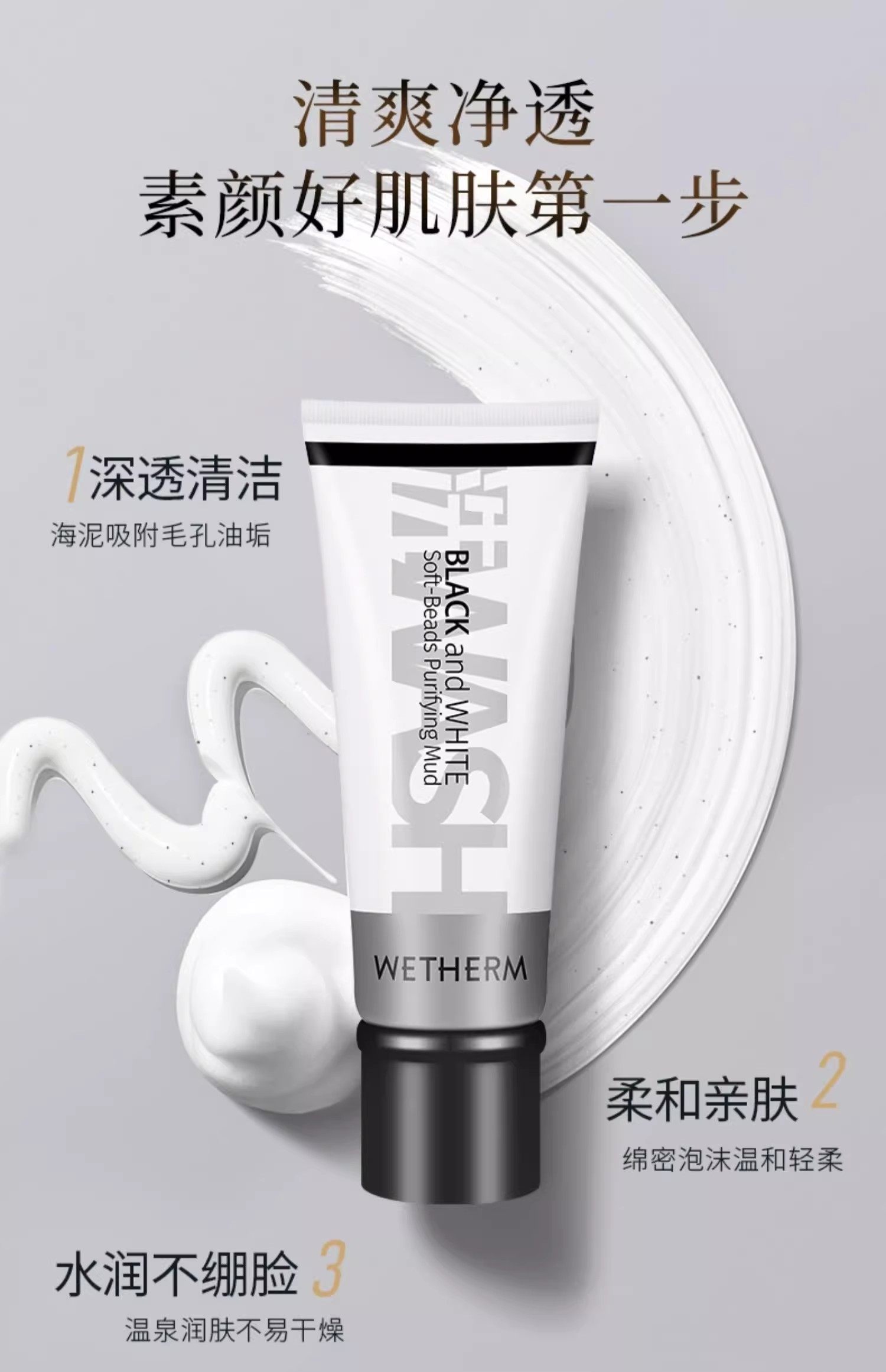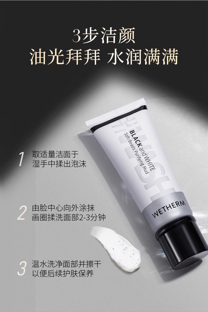 温碧泉黑白柔珠洁面乳男女去角质死皮黑头深层清洁毛孔磨砂洗面奶
