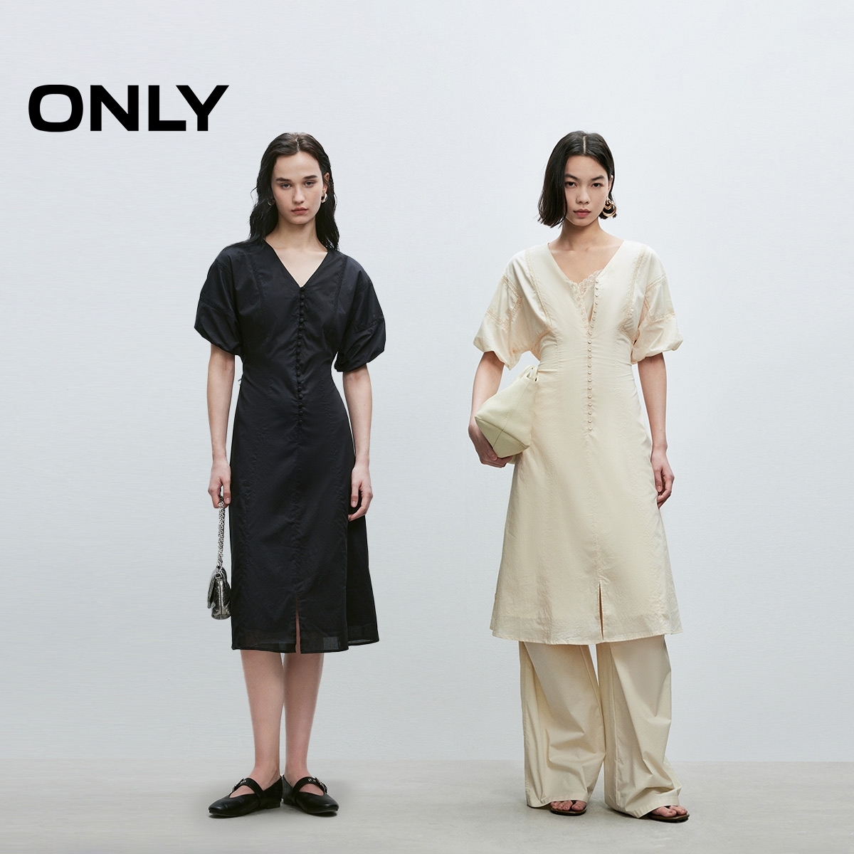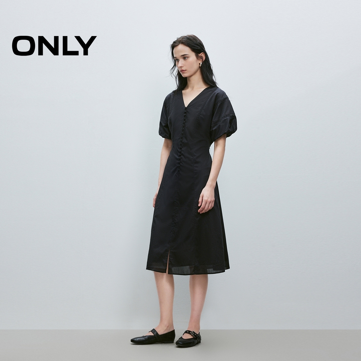 ONLY花苞袖中长裙连衣裙连衣裙