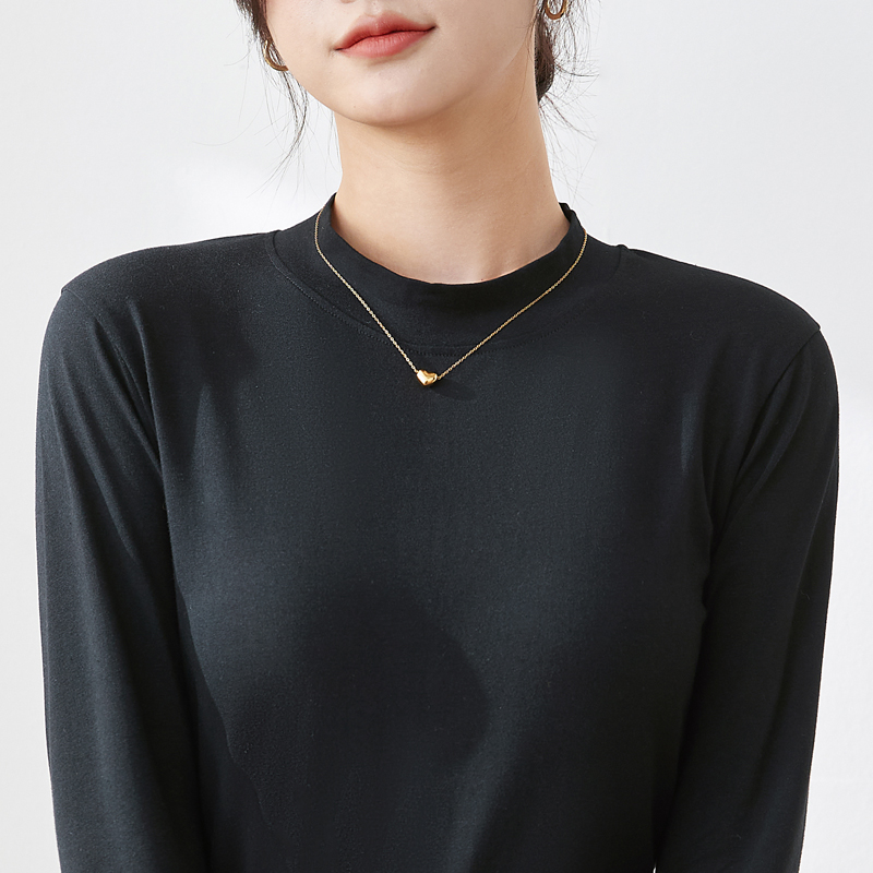 长袖半高领打底衫纯棉T恤女