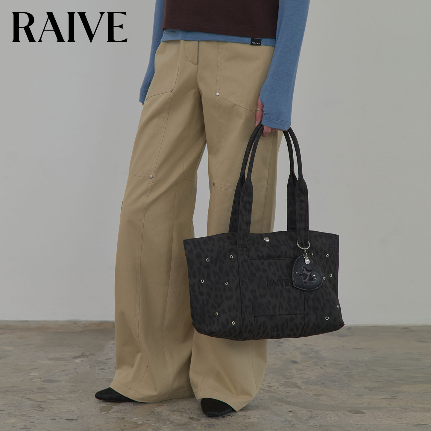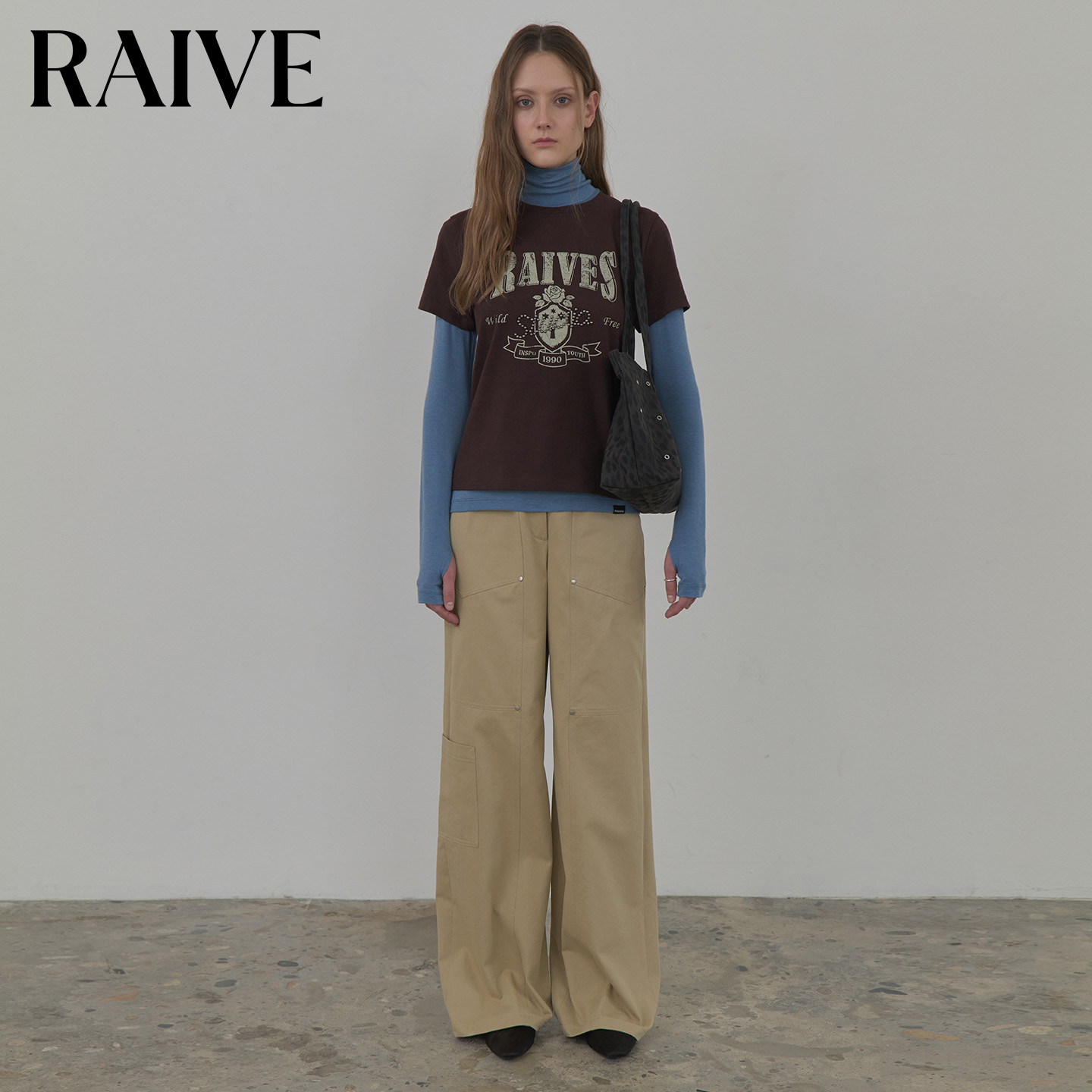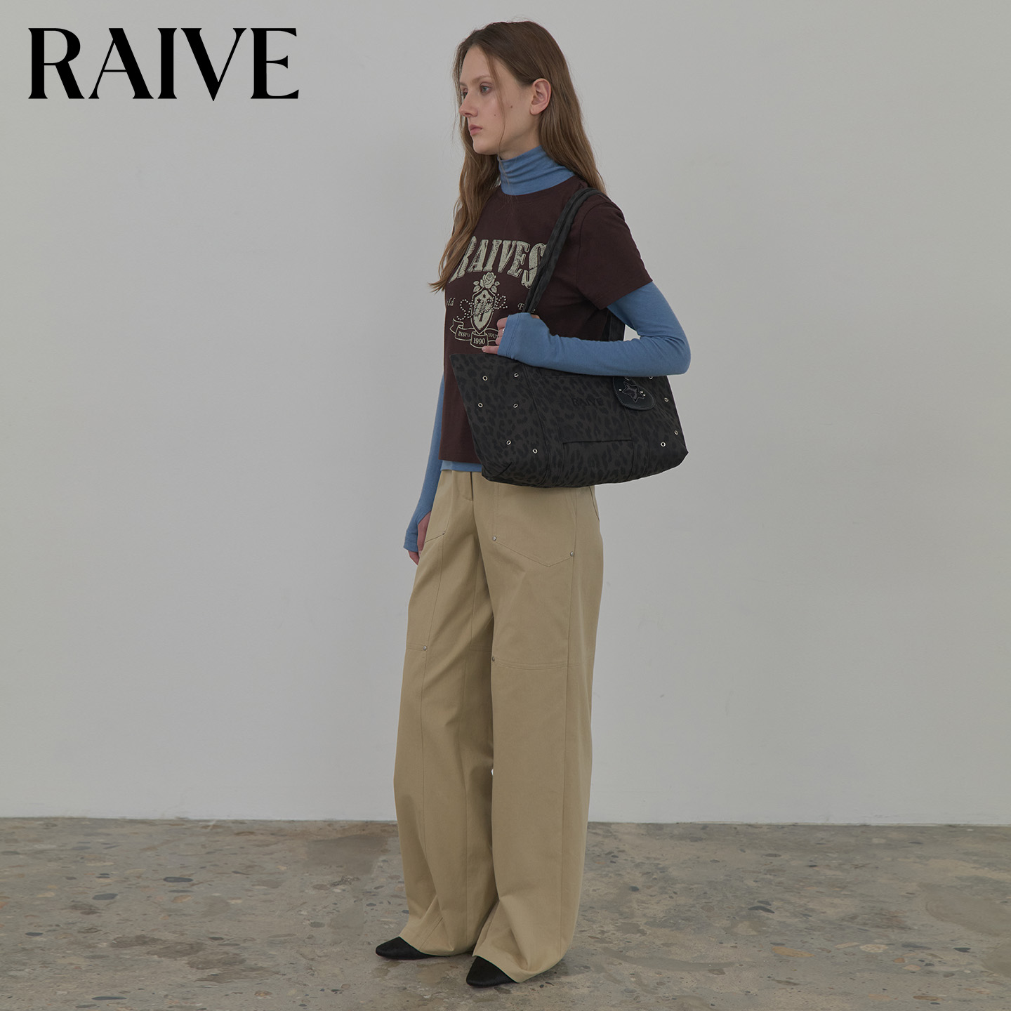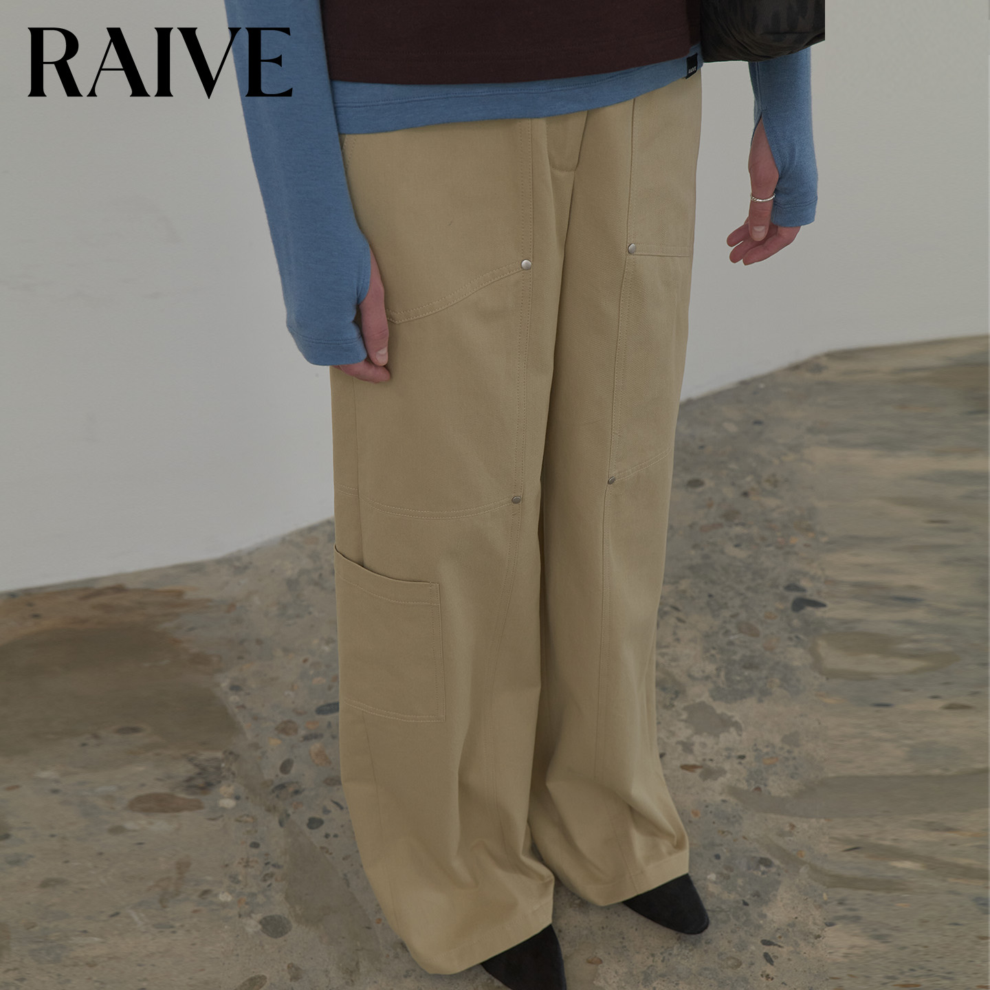 RAIVE2025秋冬新品女长裤口袋铆钉设计阔腿裤韩系休闲卡其色裤子