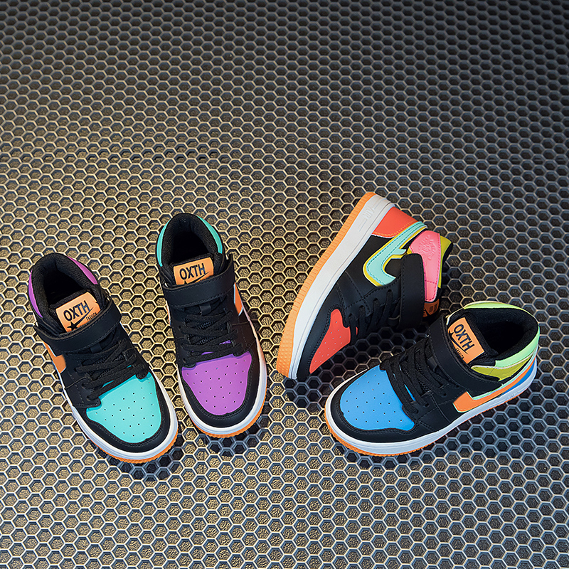 AJ童鞋男童鞋2025春秋新款儿童鸳鸯运动鞋高帮女童板鞋休闲鞋跑步