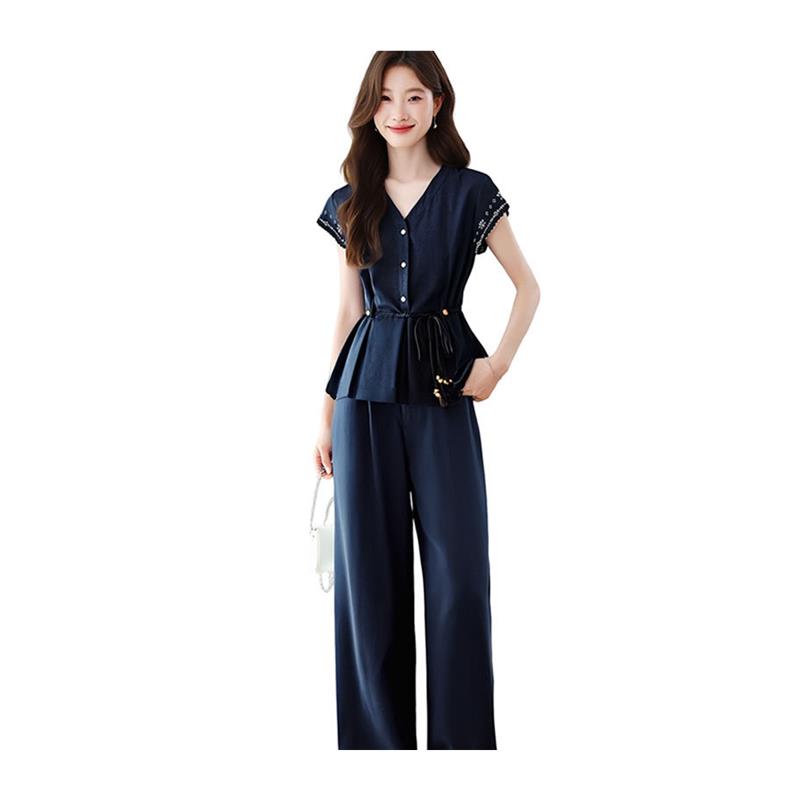 小香风套装女2025夏新款巨好看大方得体法式白领职业阔腿裤两件套