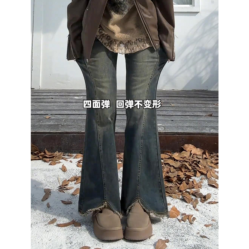 高腰微喇牛仔裤女新款大码胖mm显瘦遮胯弹力喇叭裤
